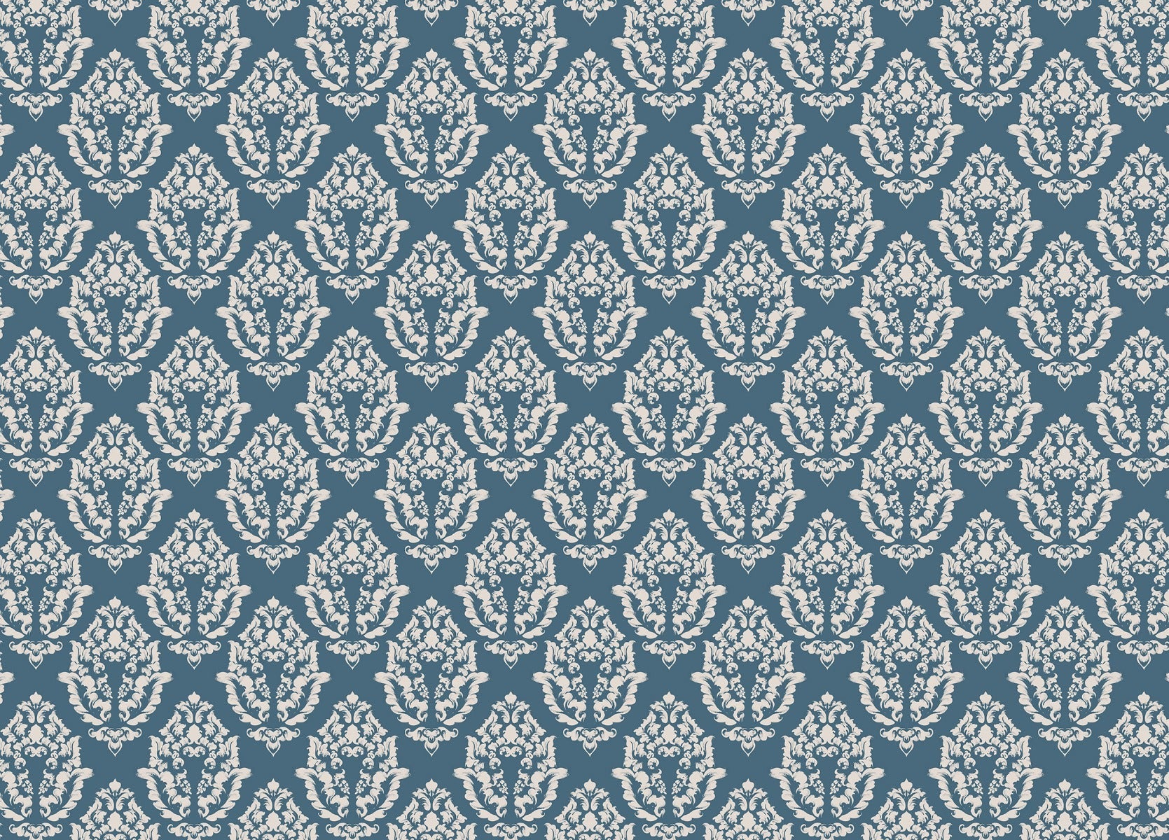 Intricate damask pattern wallpaper in blue