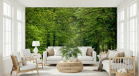 Forest path at Spring time. Embark on a journey of serenity and renewal with "Flourishing Path," a captivating wallpaper that invites you to wander through a vibrant, verdant forest. This image captures a sun-dappled pathway, canopied by a lush tapestry of emerald leaves, creating an atmosphere of tranquility and growth. The soft, diffused light filtering through the dense foliage evokes a sense of peace and invites contemplation, perfect for creating a calming and refreshing ambiance on your screen. The gentle, winding path beckons you forward, symbolizing progress, potential, and the ever-present beauty of nature's renewal. Let "Flourishing Path" transport you to a place of natural harmony, inspiring you to embrace growth and find beauty in every step of your journey. A serene vista for those seeking a touch of nature’s restorative power. This wallpaper is more than just an image; it's an invitation to thrive.