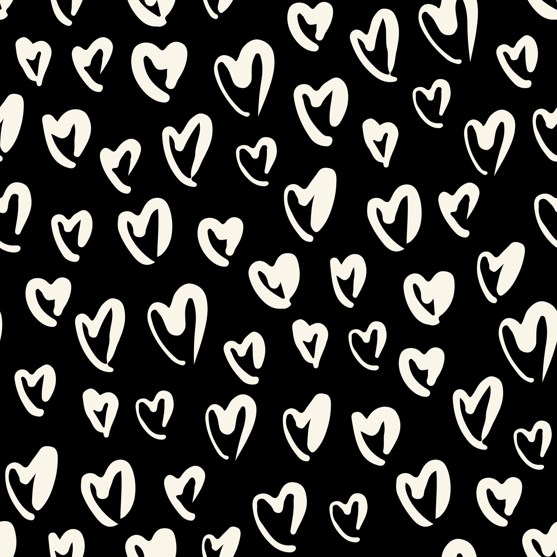 Embrace simplicity with this modern pattern of free-form hearts. The design features minimalist, ink-style hearts in ivory against a bold black backdrop. Apply this wallpaper for walls in a bedroom, living room, or hallway. The clean contrast lends a contemporary edge that works well with minimalist, modern, or even boho décor. Easily complements bold or neutral palettes.