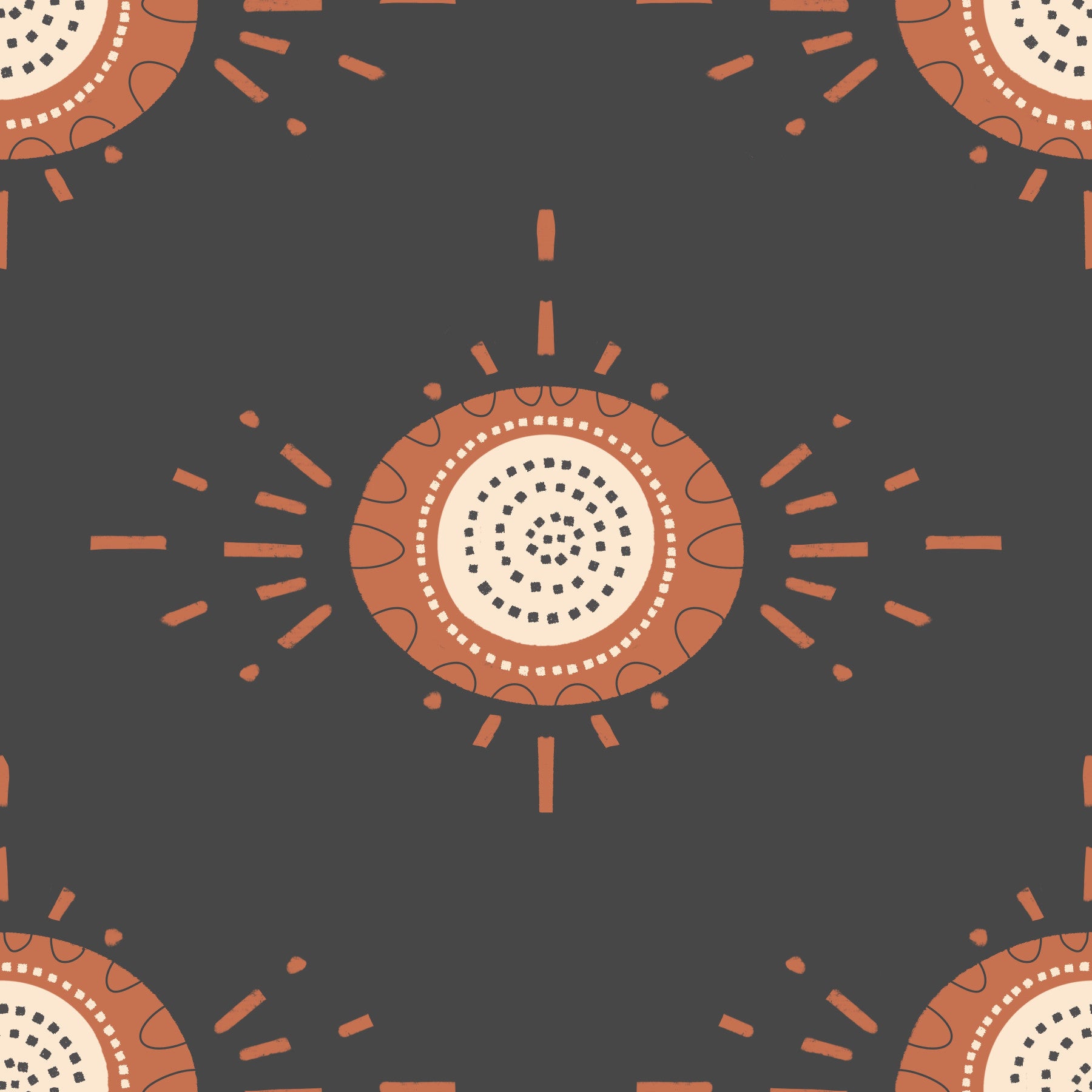 Stylized blooms in charcoal outlines on warm base