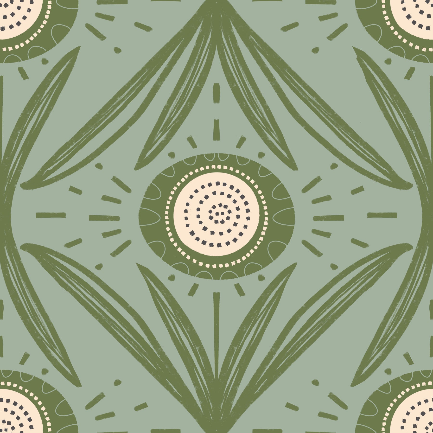 Folk Bloom Radiance Olive Sage wallpaper design