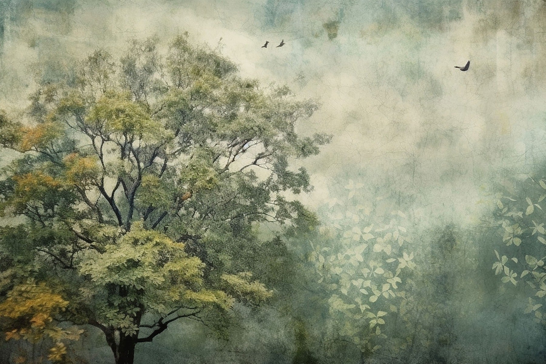 Serene Forest Paradise wall mural for tranquil living room walls.