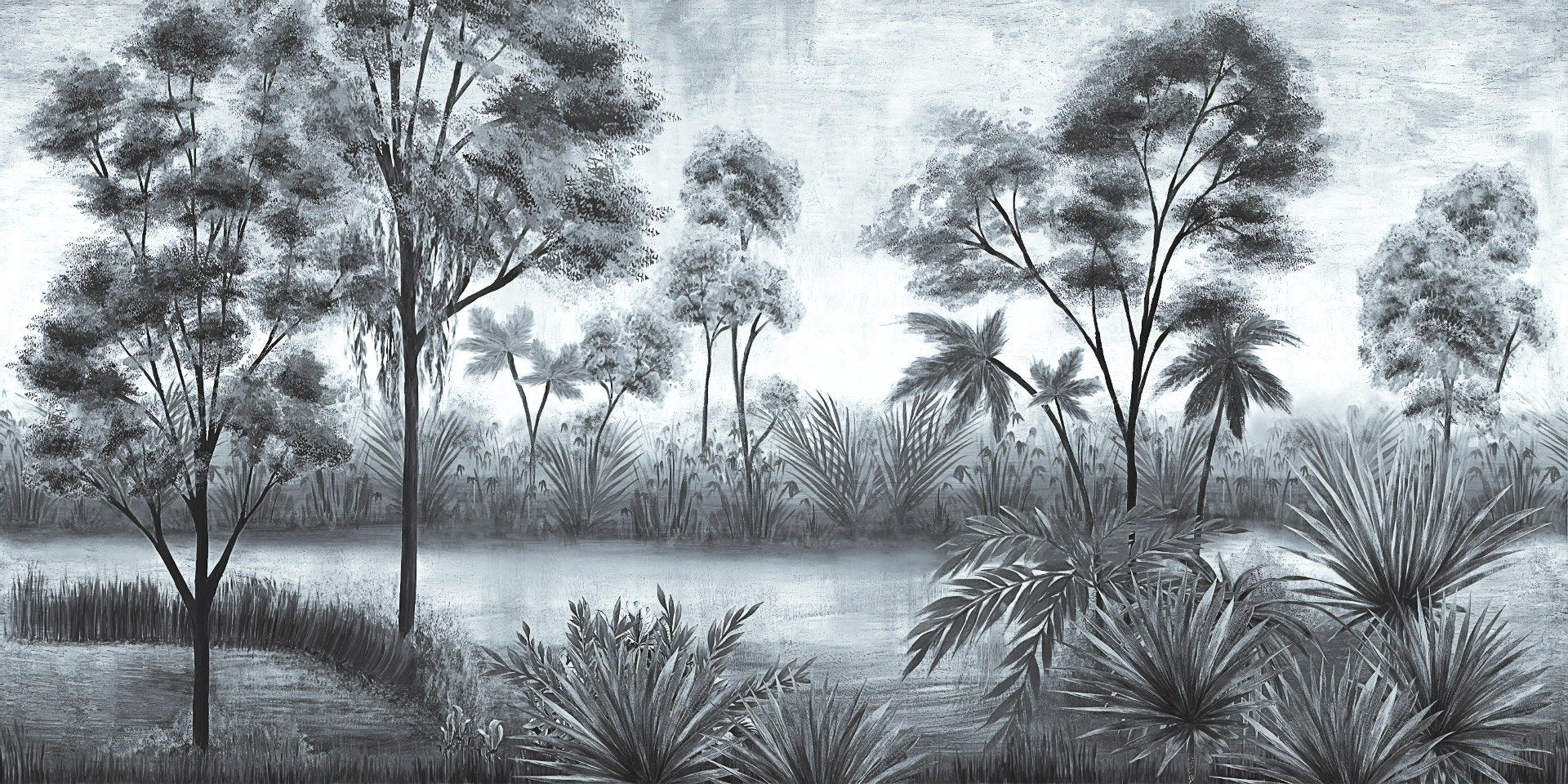 Gloomy trees textured wallpaper murals provide a striking focal point for any space, with a tranquil lagoon surrounded by leafy, dark trees. This classic nature-inspired motif lends spaces an atmosphere of warmth and energy at a stroke. The rich architectural characteristics of the serene pool, framed by delicate vegetation, infuse your walls with a timeworn aura, boost your spirits, and instils tranquillity. Ideal nature lovers, this natural tropical wallpaper graphic is guaranteed to dispel illusions and elevate your space with a unique charm. The wallpaper is user-friendly, boasting a peel-and-stick application. Its removable and self-adhesive quality allows easy and retrainable installation and readjustment, which is ideal for dynamic interior decor. It's an excellent idea for anyone interested in enriching their space with a bit of interior design magic by using gloomy forest tree wallpaper. In murals, this is a showplace of refined taste, where artwork is combined with practical utility.