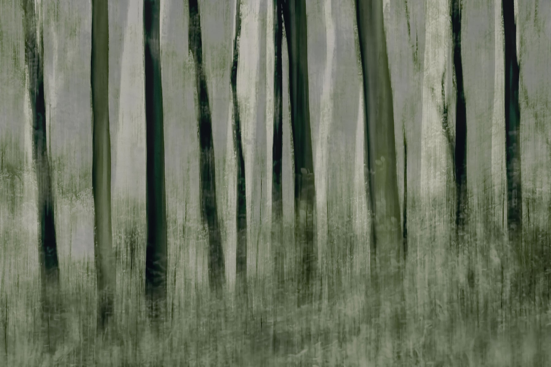 Bring the tranquility of an ancient forest into your home with this unique wallpaper for walls. It features tall trees in muted green and gray tones, creating a serene and calming atmosphere. The design uses a brushstroke effect to give the image an artistic feel. It's perfect for bedrooms, living rooms, or any space where you seek a peaceful escape. The soft color palette complements minimalist, Scandinavian, or rustic interiors.