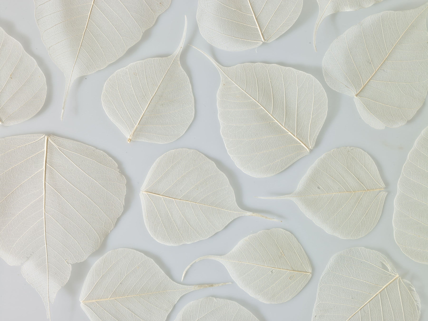 Immerse yourself in the subtle beauty of 'Veiled Serenity,' a wallpaper that showcases the intricate elegance of skeletal leaves. This image features a delicate arrangement of ethereal, bleached-white leaves, their intricate vein patterns meticulously displayed against a softly muted background. The result is an artwork that evokes a sense of tranquility and quiet contemplation. The detailed network of veins, now starkly visible, creates a fascinating texture that is both organic and refined. This minimalist composition will add a touch of natural grace and sophistication to any space, making it ideal for those seeking a calming and visually intriguing backdrop. Embrace the understated allure of nature with this unique and captivating wallpaper.