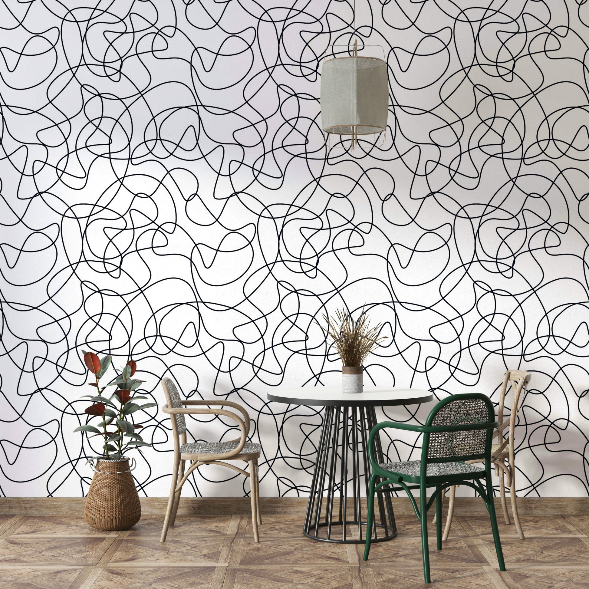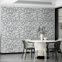 Embrace minimalist design with this striking wallpaper for walls. Black lines dance across a white backdrop, creating a visually engaging abstract pattern. The contrasting colors make any room pop. This design suits modern interiors, hallways, or creative spaces. It introduces a bold but simple style. Install it in your living room, home office, or bedroom for a modern, artsy touch. The graphic style pairs well with neutral furniture and accents. Transform your space with this easy to install peel and stick wallpaper.