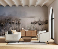 Transform your room with this serene landscape. The wallpaper for walls features a tranquil scene of frosted reeds and a misty lake. Muted tones of beige, blue, and gray create a calming atmosphere, while the detailed textures add depth. This design is ideal for bedrooms, living rooms, or home offices. Its gentle palette helps to brighten spaces and create a peaceful retreat. The design brings nature indoors, offering a quiet escape from the everyday hustle. Create a soothing backdrop that enhances relaxation and comfort.