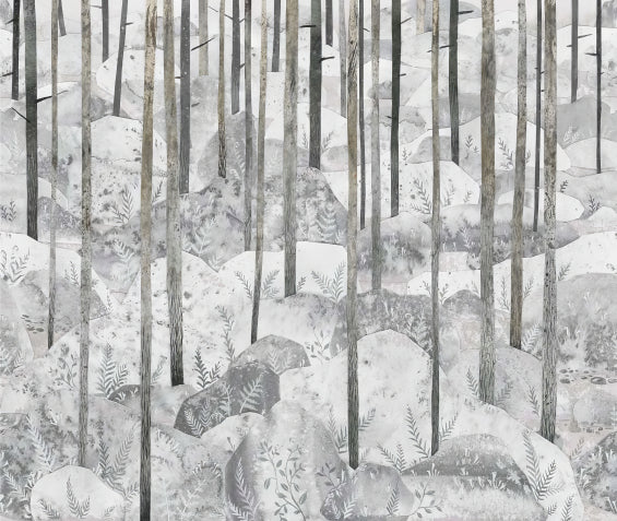 The frosted fern forest mural on a grey wall is a quiet but powerful look for those homeowners wanting to change their environment. It has a subtle rendering of a snowy forest, where low grey and white tones are mixed with detailed fern prints, which gives an aura of serenity. This wallpaper is harmonized with various design schemes; it supplements the room without overpowering it. The quality material guarantees robustness and easy cleaning, making it a practical device for any busy household. Its distinctive design lets nature seamlessly seep into your home in an unostentatious, refined manner. Get this beautiful grey wallpaper and invest in it to create a better atmosphere for your home.