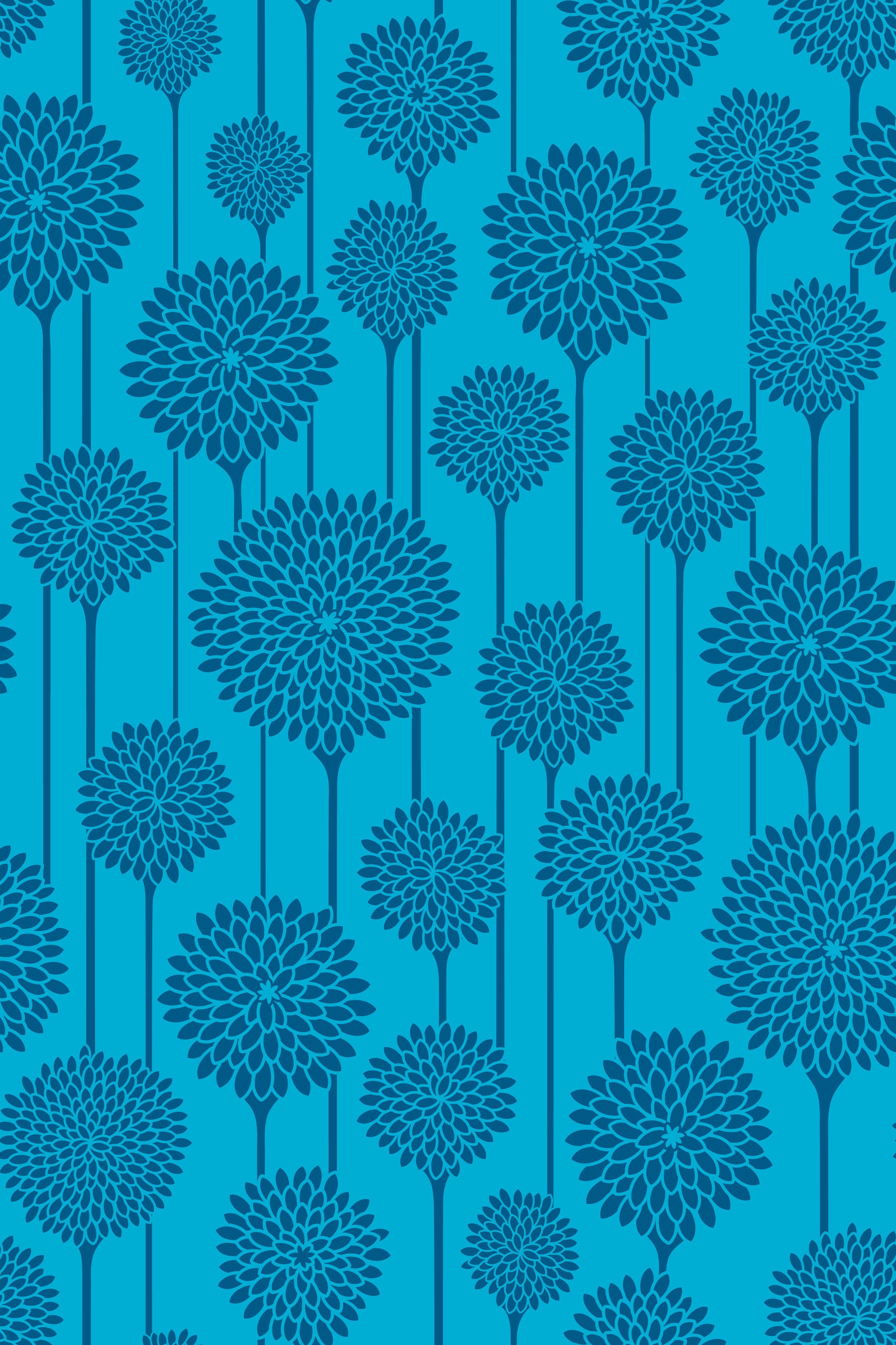 Step back in time with this Garden Beauties wallpaper, a delightful blend of vintage cottagecore charm and Mid-Century Modern Scandi simplicity. This design features stylized floral blooms, reminiscent of botanical illustrations, rendered in a striking monochromatic blue palette of indigo navy and bright blue. Each big bloom is meticulously detailed with clean lines and a bold, graphic approach, while the floral stems suggest a subtle stripe. Whether you're looking to add a touch of vintage flair or a Scandi-chic vibe, "Garden Beauties" is the perfect choice for creating a stylish and welcoming space. It's a botanical blueprint for a beautiful home, where vintage meets modern in a delightful dance of design. This pattern design is also available in Other Colourways too! Original wallpaper pattern design by Jackie Tahara of UnBlink Studio.