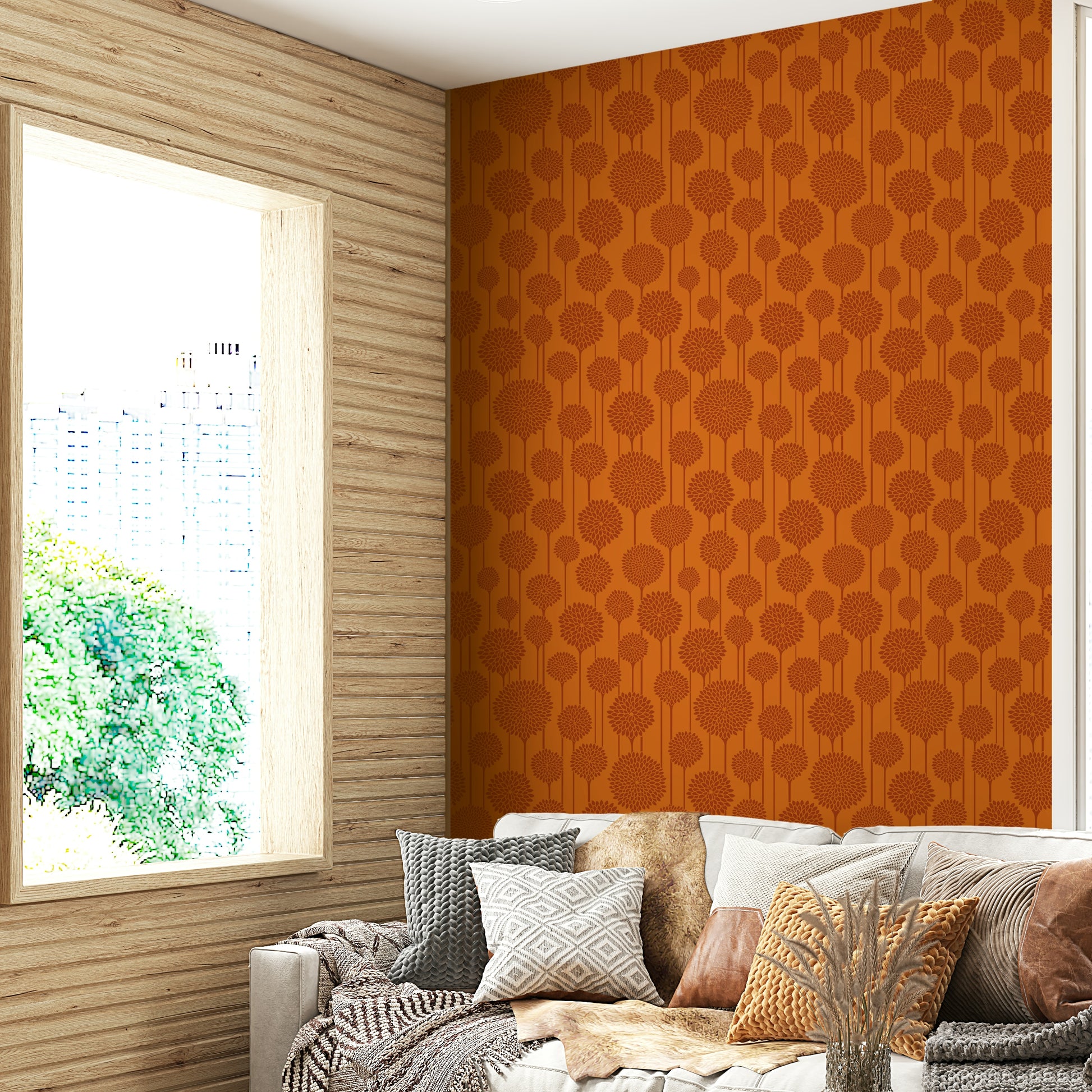 Step back in time with this Garden Beauties wallpaper, a delightful blend of vintage cottagecore charm and Mid-Century Modern Scandi simplicity. This design features stylized floral blooms, reminiscent of botanical illustrations, rendered in a striking warm monochromatic palette of terracotta and rust orange. Each big bloom is meticulously detailed with clean lines and a bold, graphic approach, while the floral stems suggest a subtle stripe. Whether you're looking to add a touch of vintage flair or a Scandi-chic vibe, "Garden Beauties" is the perfect choice for creating a stylish and welcoming space. It's a botanical blueprint for a beautiful home, where vintage meets modern in a delightful dance of design. This pattern design is also available in Other Colourways too! Original wallpaper pattern design by Jackie Tahara of UnBlink Studio.