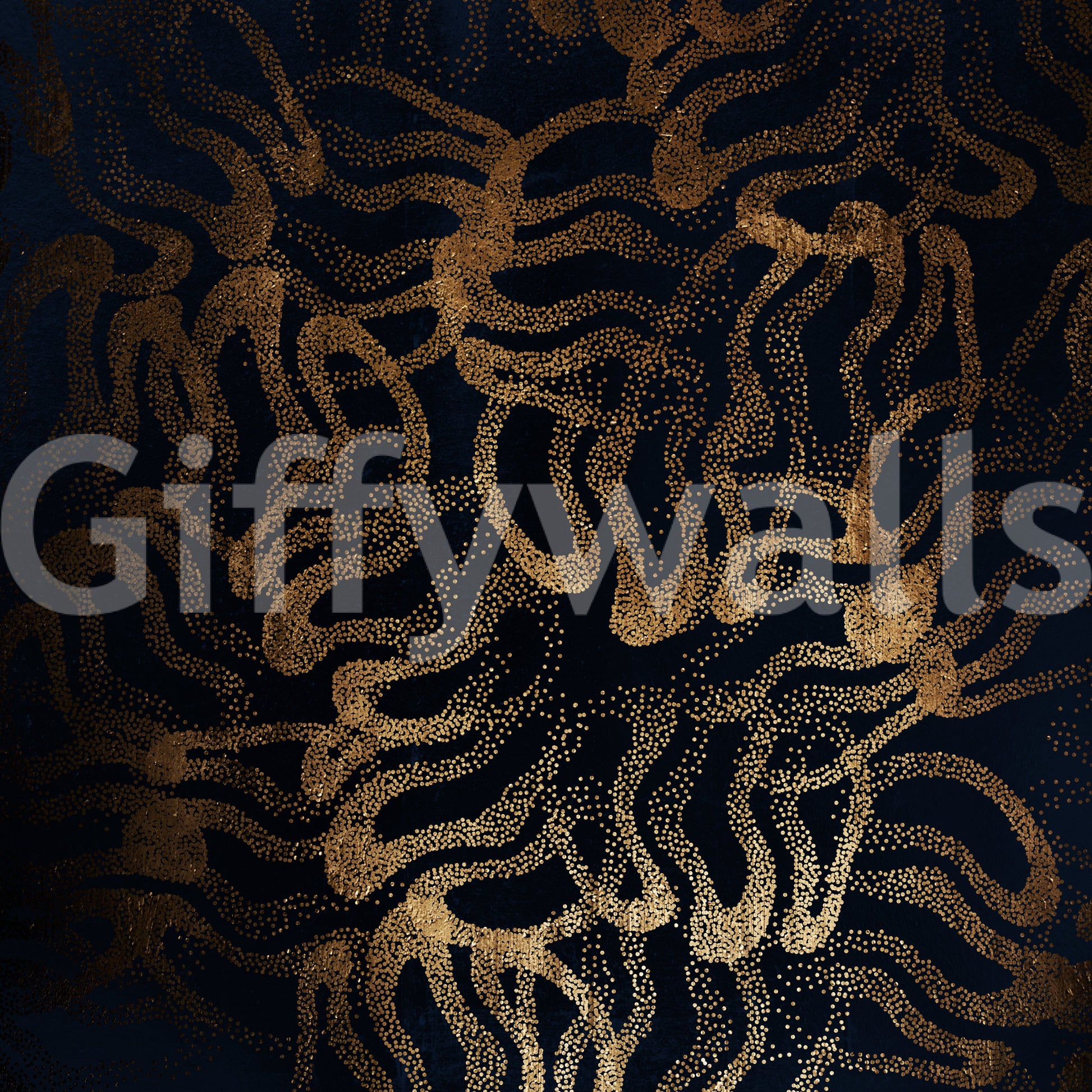 Evoke the spirit of Paul Gauguin's Tahitian dreams with this captivating wallpaper. A deep, almost nocturnal blue provides a dramatic backdrop for the sinuous, abstract forms crafted from shimmering gold dots. These organic lines twist and flow, reminiscent of exotic flora or underwater currents, capturing the essence of Gauguin's fascination with the natural world. The texture adds depth, inviting touch and creating an immersive experience. Perfect for adding a touch of understated luxury and artistic flair to any space, this wallpaper transcends simple decoration, acting as a conversation starter and a portal to a world of vibrant colors and primal beauty. Let this 'Gauguin' wallpaper transform your walls into a canvas, whispering tales of far-off islands and artistic revolution.
