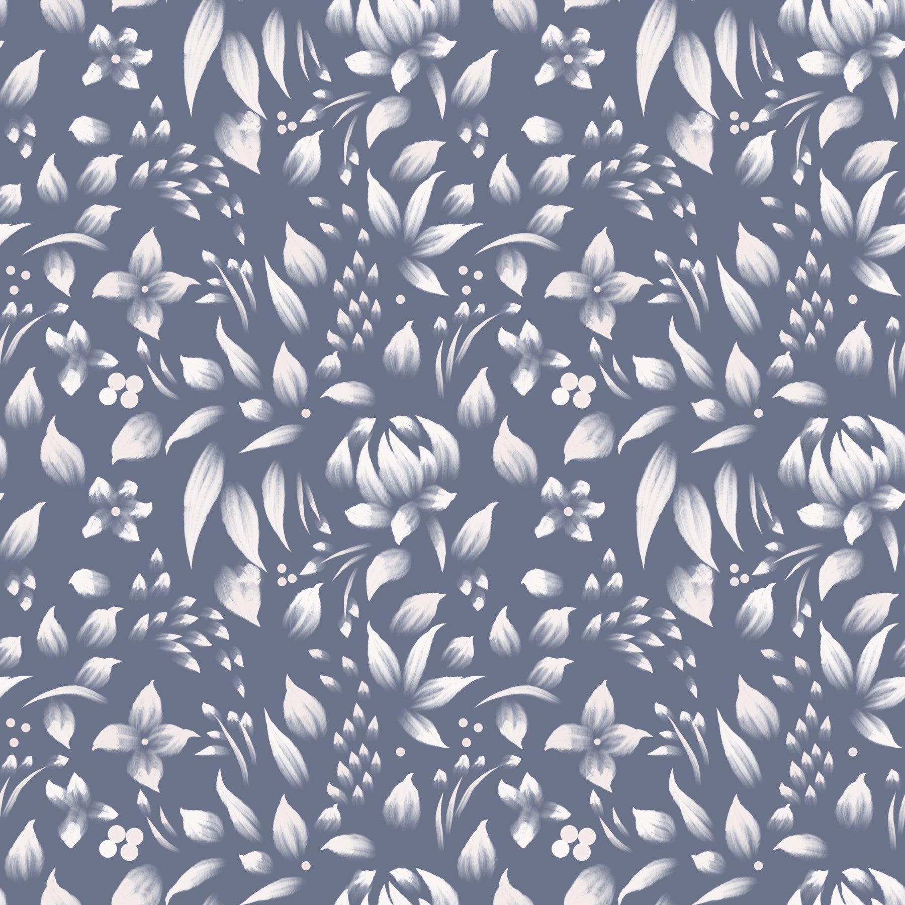 Blue and white Gentle Foliage Wallpaper repeating print.
