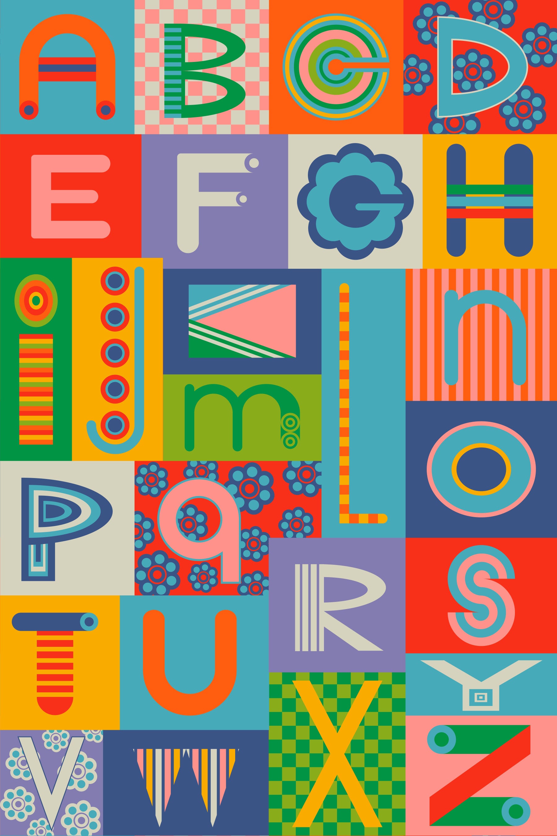 Geometric ABCs Retro Alphabet Graphic Lettering Rainbow Brights Colors Wallpaper⁠