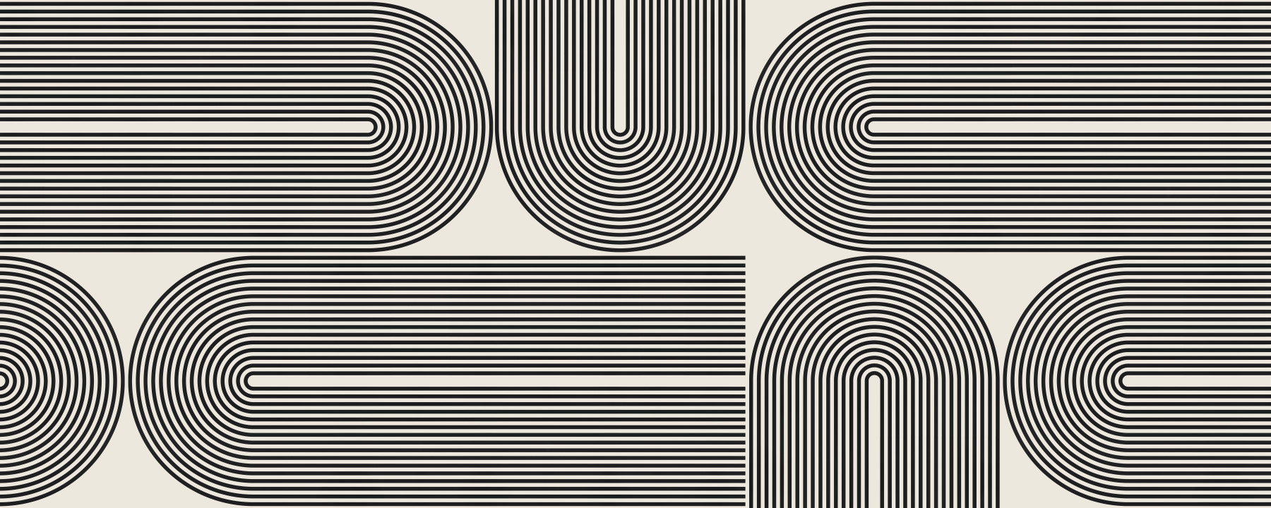 Transform your space with this striking geometric wallpaper for walls. The design features bold, black lines arranged in arch and stripe formations against a light neutral background. The pattern creates a modern, almost architectural feel. Use it in a living room or office to add structure and visual interest. Its clean lines and monochrome palette offer a versatile look, working with minimalist or contemporary interiors. This design adds a unique statement to any room.