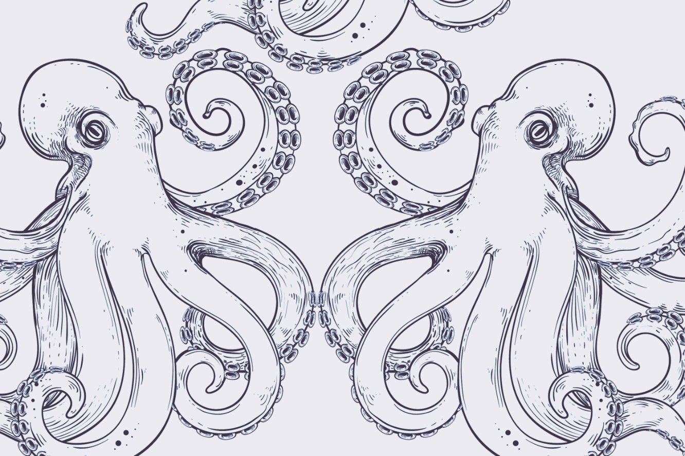 Bring the magical underwater world of the deep sea to your bathroom with this giant octopus wallpaper mural. It is an attractive design featuring a detailed illustration of octopuses and brings marine magic to the walls of your bathroom. Perfect for a compelling focal point, this mural introduces adventure and mystery into any bathroom. The monochromatic colour scheme ensures it will blend seamlessly with various interior styles, and intricate patterns keep visual interest alive. Perfect for nautical theme lovers, this wallpaper mural transforms an ordinary bathroom into an extraordinary underwater haven. Get immersed in a serene and fascinating oceanic atmosphere with this unique and artistic wallpaper.