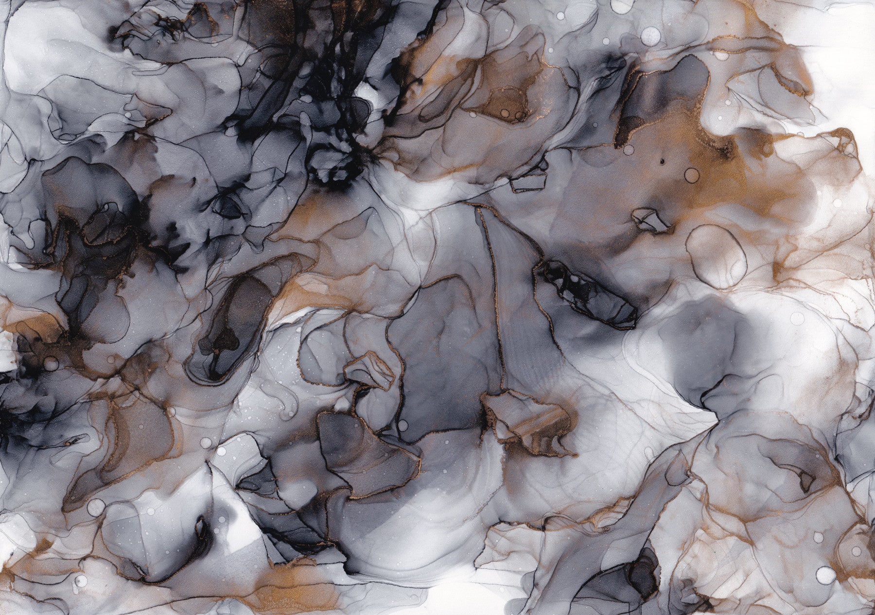 Close-up of smoky gray swirls accented with golden details