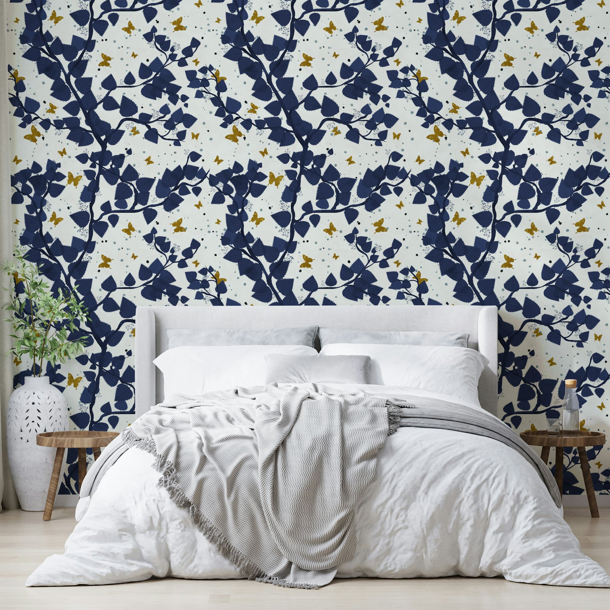Gold and Deep Blue Butterflies Tree Wallpaper⁠