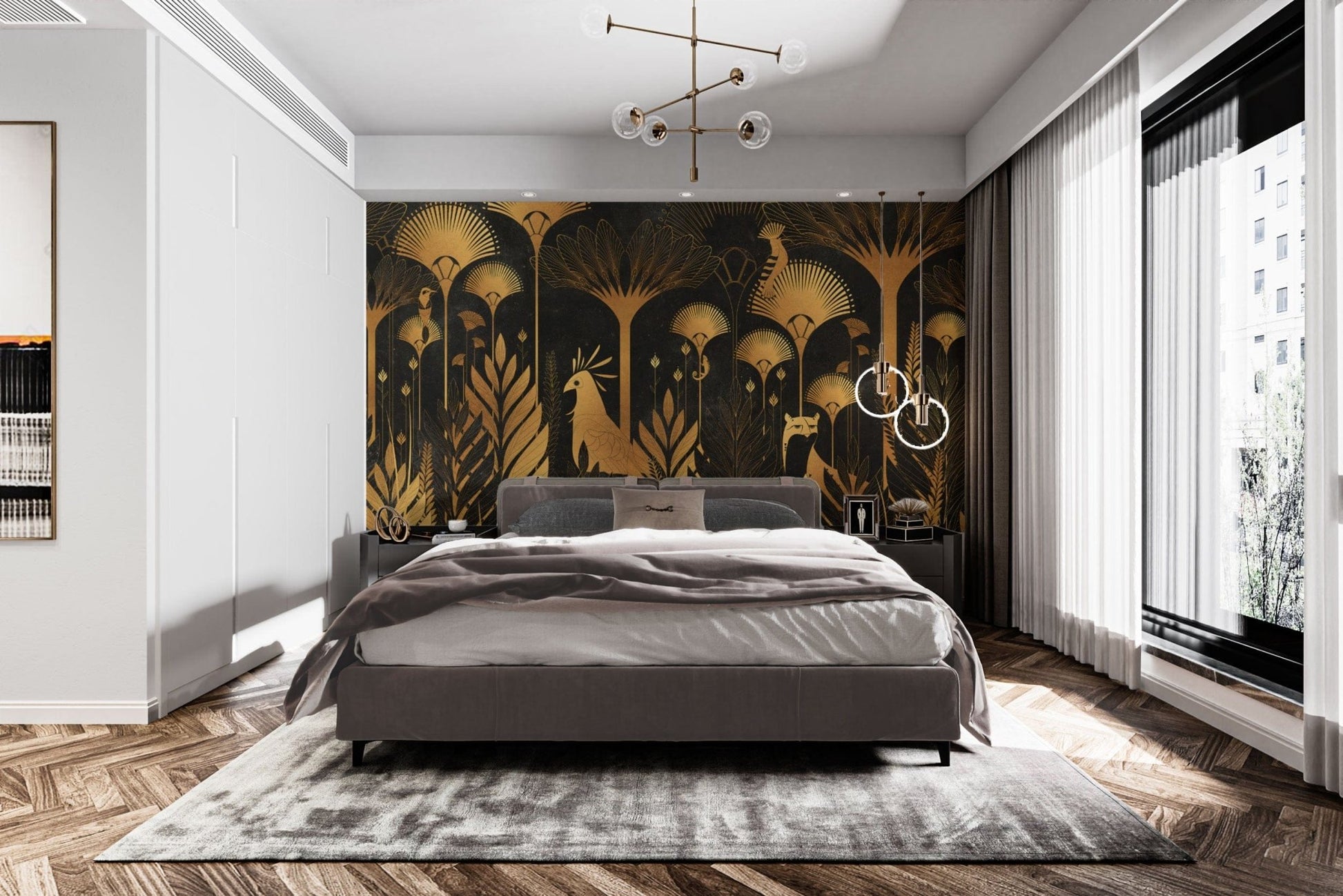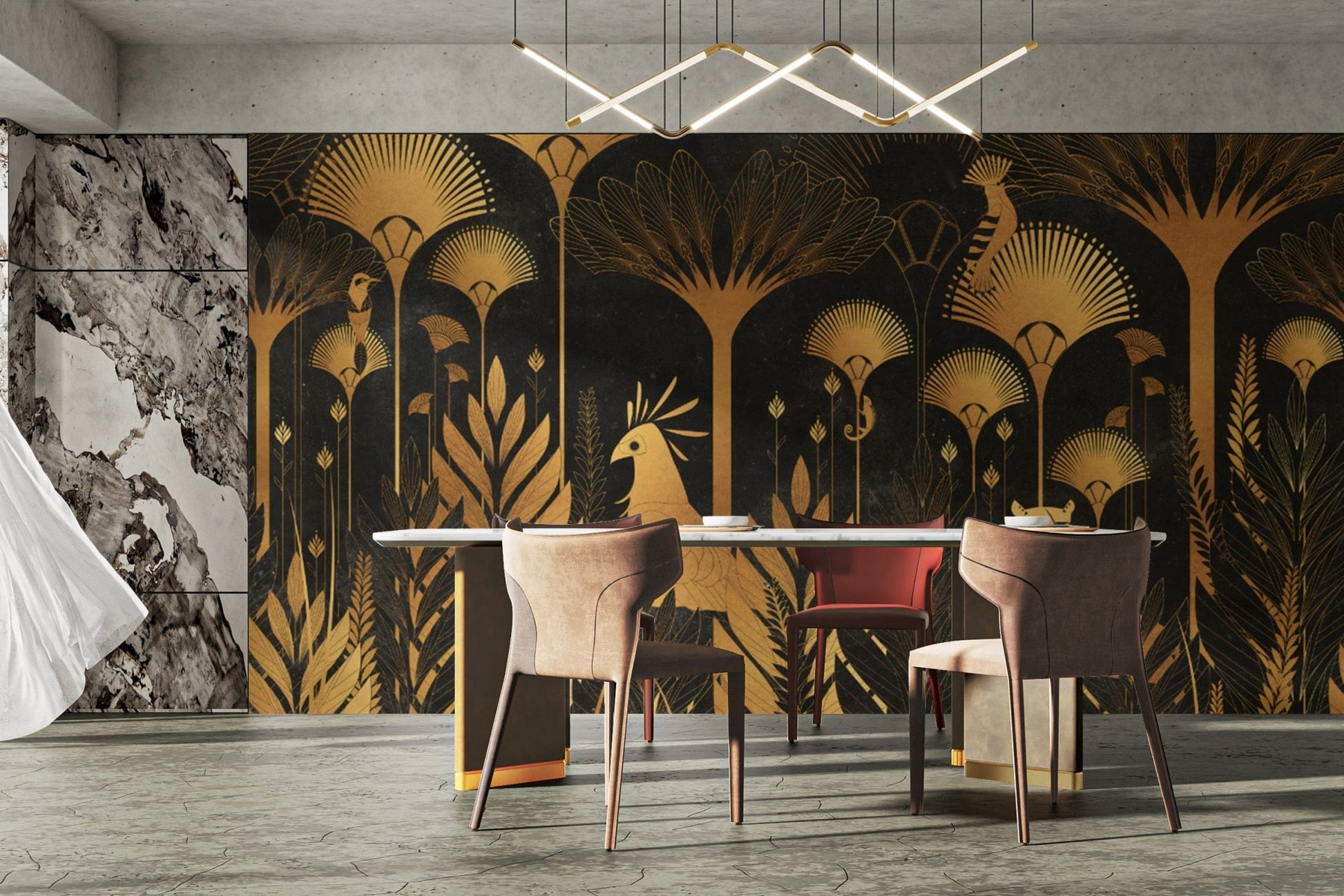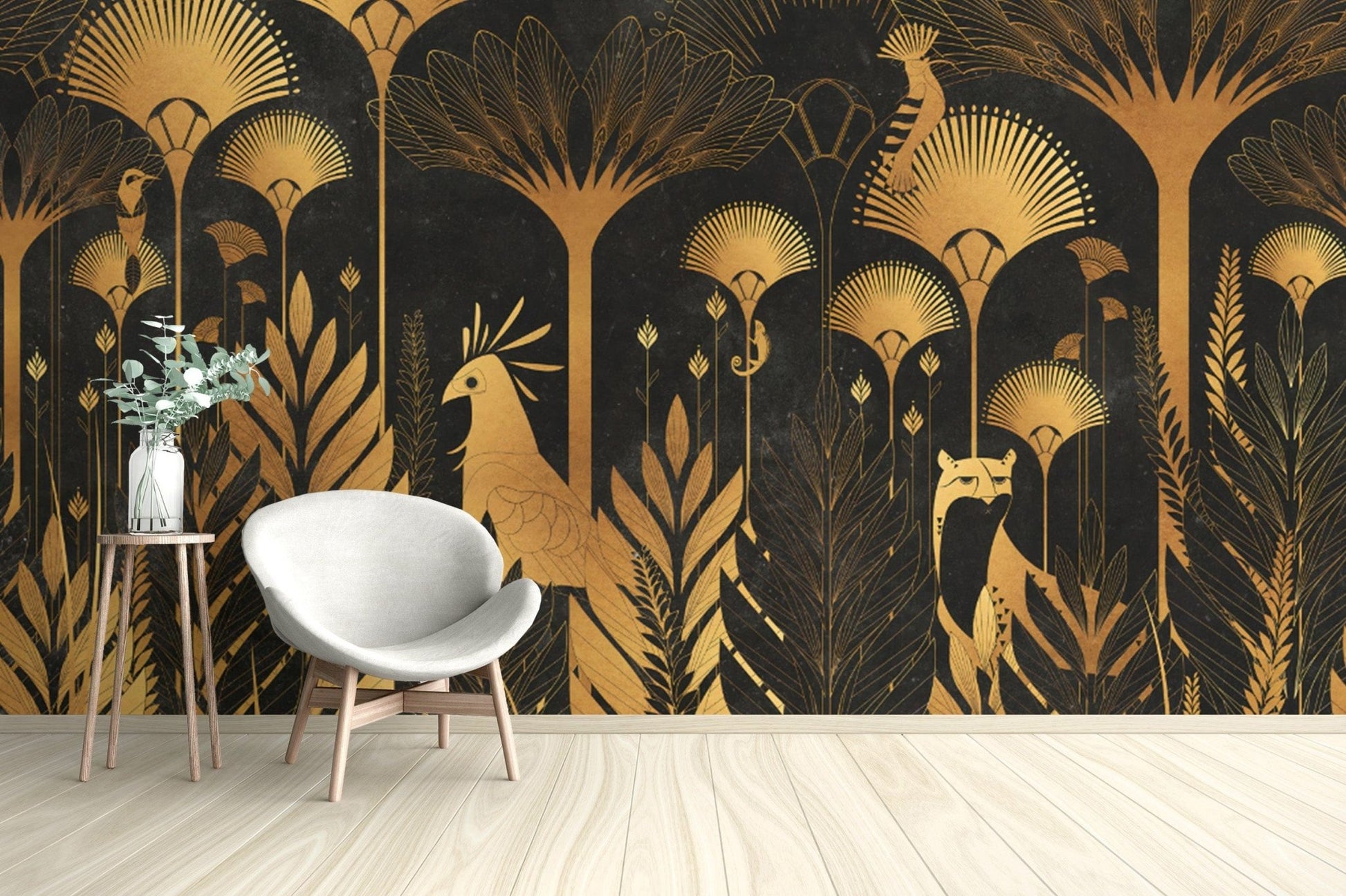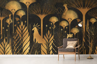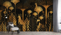 Golden Art Deco Tropical Wallpaper