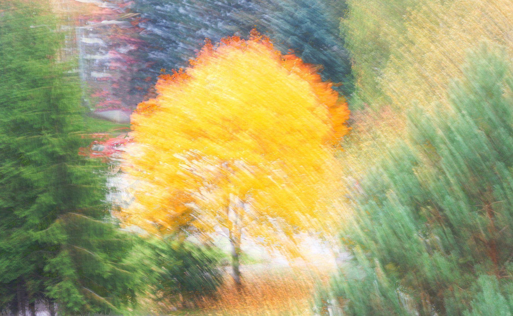 This striking piece presents a golden tree amidst a blurred backdrop of green and autumn hues. The dynamic brushwork conveys the fleeting beauty of nature, inviting viewers to reflect on the changing seasons. Perfect for adding a touch of warmth and energy to your living space, this piece embodies the essence of autumn's charm. Elevate your decor with this unique representation of nature's beauty.
