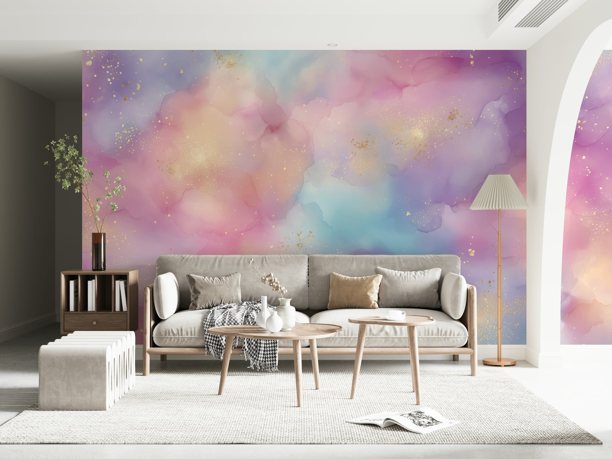 Immerse yourself in the ethereal beauty of "Golden Dust Fantasy," a mesmerizing wallpaper that evokes a sense of wonder and tranquility. Soft watercolor hues of lavender, rose, and serene blue blend seamlessly, creating a dreamlike backdrop that's both calming and captivating. Shimmering golden particles delicately dance across the canvas, like stardust scattered upon a celestial sky. These golden accents add a touch of luxury and magic, transforming your screen into a portal to a fantastical realm. Perfect for those seeking a touch of elegance and whimsy, this wallpaper brings a soft, inviting glow to any digital space. Let "Golden Dust Fantasy" transport you to a world where dreams take flight and imagination knows no bounds. Elevate your digital experience with this enchanting blend of color, texture, and golden shimmer.