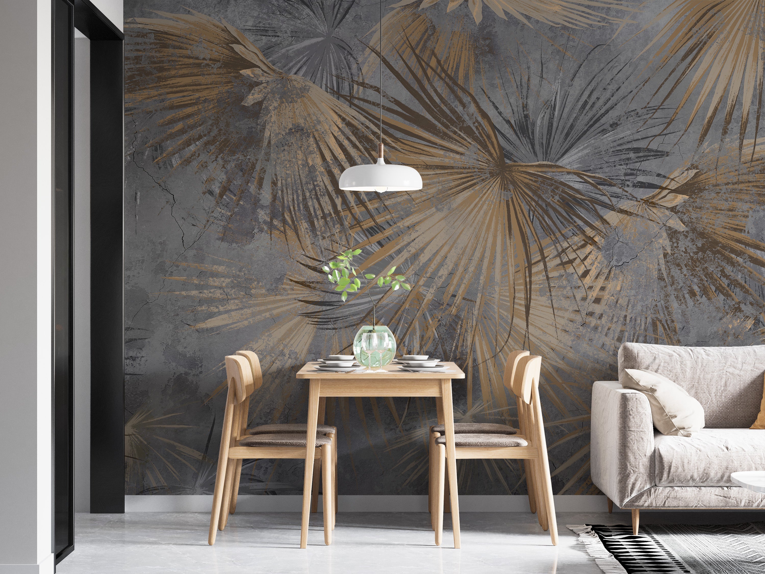With the golden frond elegance wall mural, your living space can take on a whole new dimension of style. This exquisite tropical wallpaper brings the outside in, with golden fronds set against a dramatic background that will command attention in any room. Perfect for homeowners looking to create a focal point or a conversation starter, this wallpaper offers both in spades.