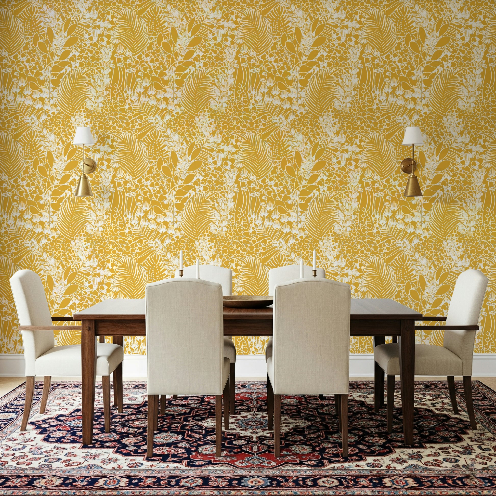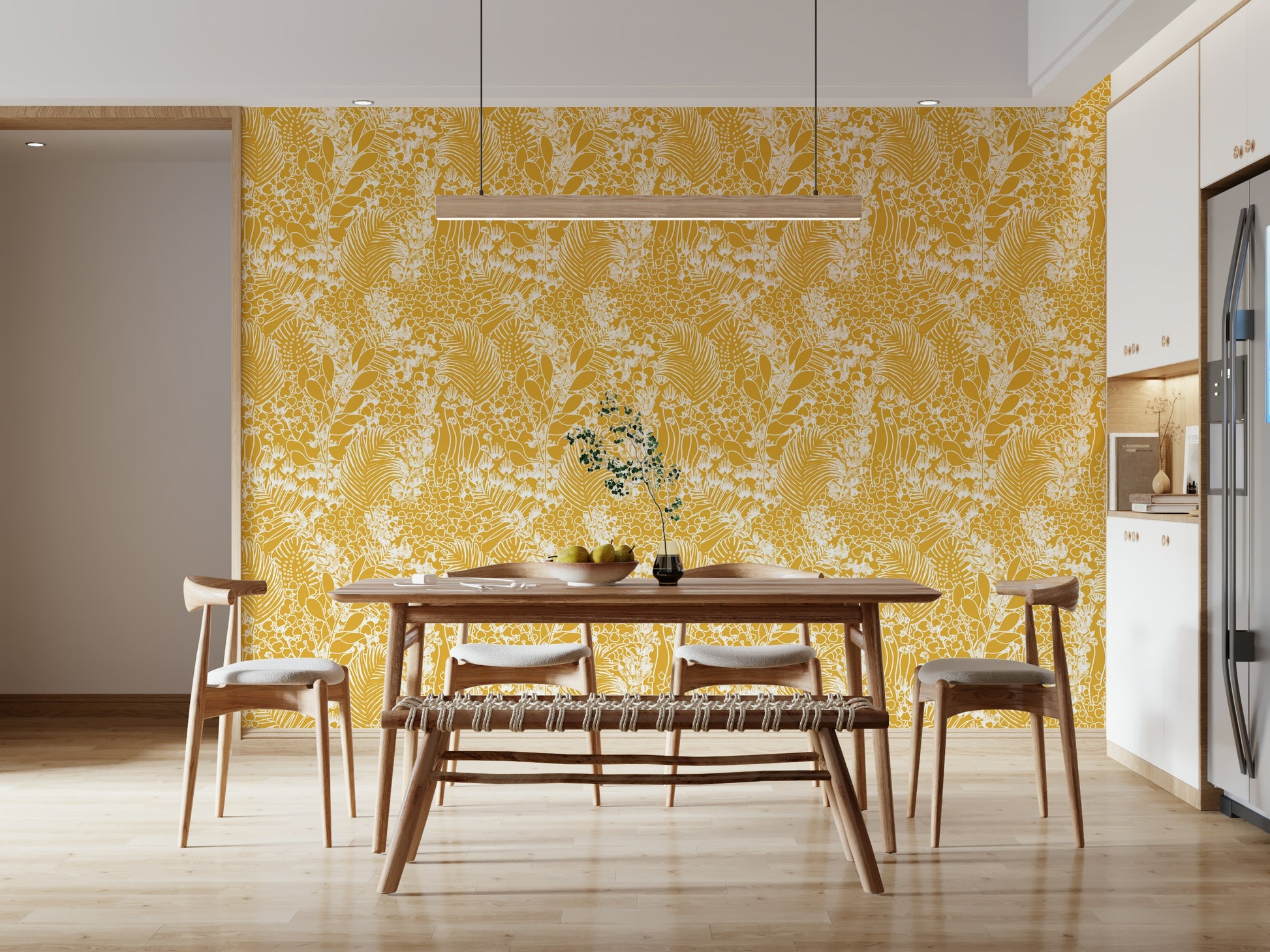 Transform your space into a tranquil haven with "Golden Meadow Dream," a wall décor that captures the essence of a sun-kissed field teeming with life. Delicate floral outlines and bold leaf shapes intertwine, creating a captivating dance of nature's artistry. The background evokes the warmth of the golden hour, casting a soft, inviting glow throughout the design. White and Creamy accents highlight the intricate details, providing a touch of ethereal elegance. This stunning piece is perfect for adding a touch of natural beauty and serene sophistication to any room. The overall effect is an immersive experience, a visual journey into a flourishing landscape that soothes the soul and inspires a sense of wonder.