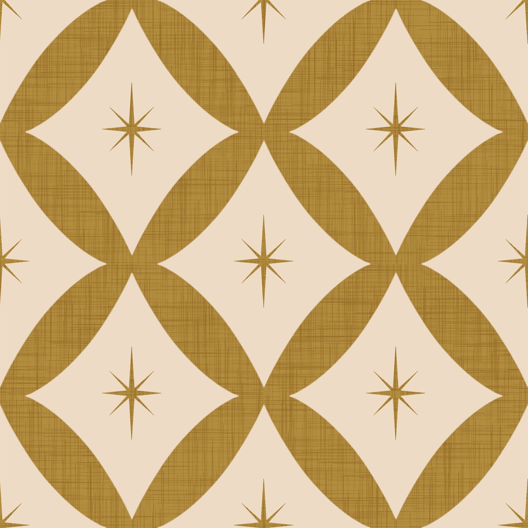 Escape the mundane and instantly transport yourself to a sun-drenched, golden-hour paradise with the captivating Golden Star Lattice Wallpaper design. This luxurious pattern features intersecting sepia ovals and radiant, stylized starbursts, evoking a vibrant mid-century glamour. The repeating motif brings a textural warmth to any space, making it a perfect feature wall. Whether you choose our traditional wallpaper for walls or the convenient peel and stick wallpaper, installation is a dream. Elevate your room with this spectacular wallpaper mural that promises an imaginative retreat. Consider bringing this exceptional style into your home today.