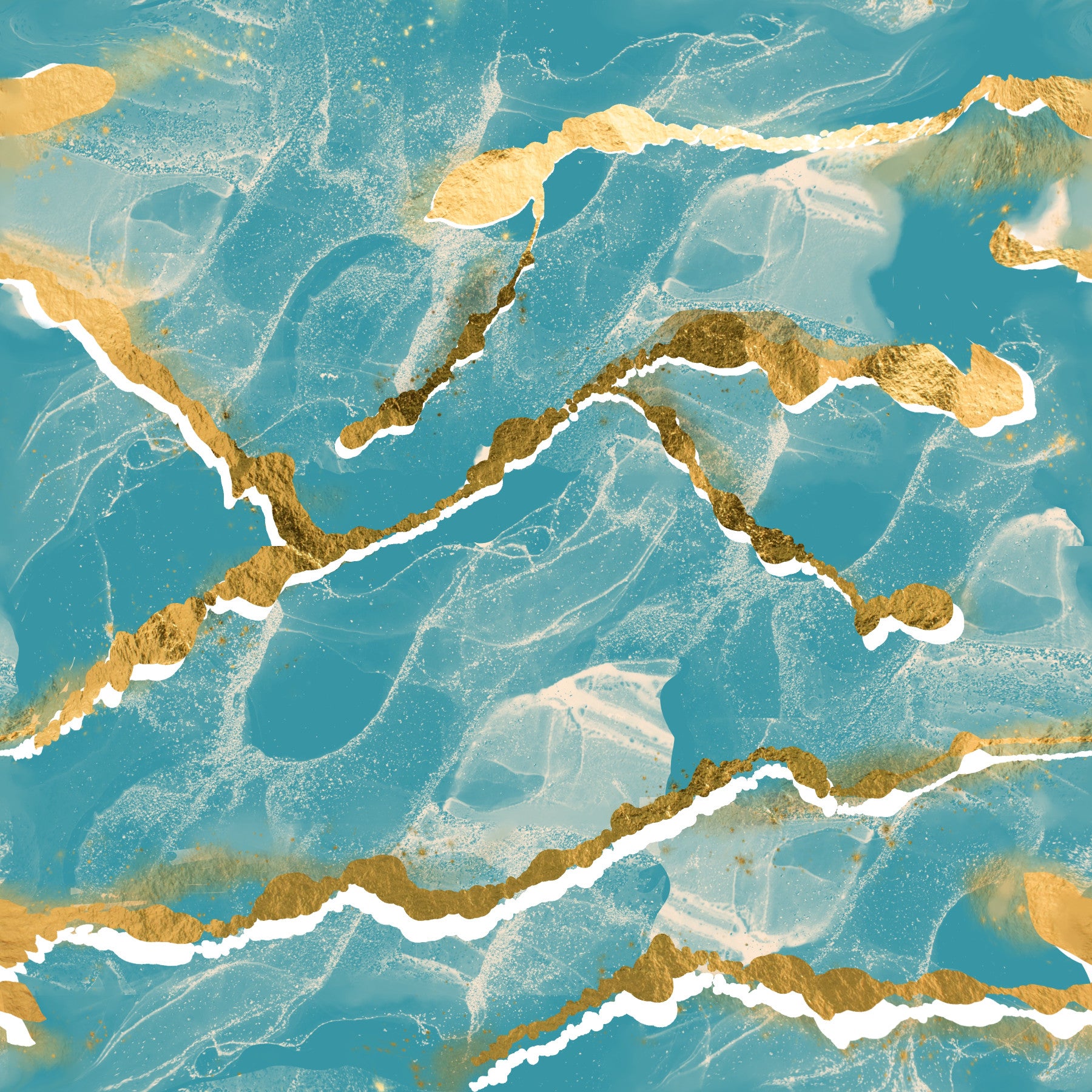 Metallic gold veining texture in the Golden Veins Tropical Teal Marble Wall Mural.