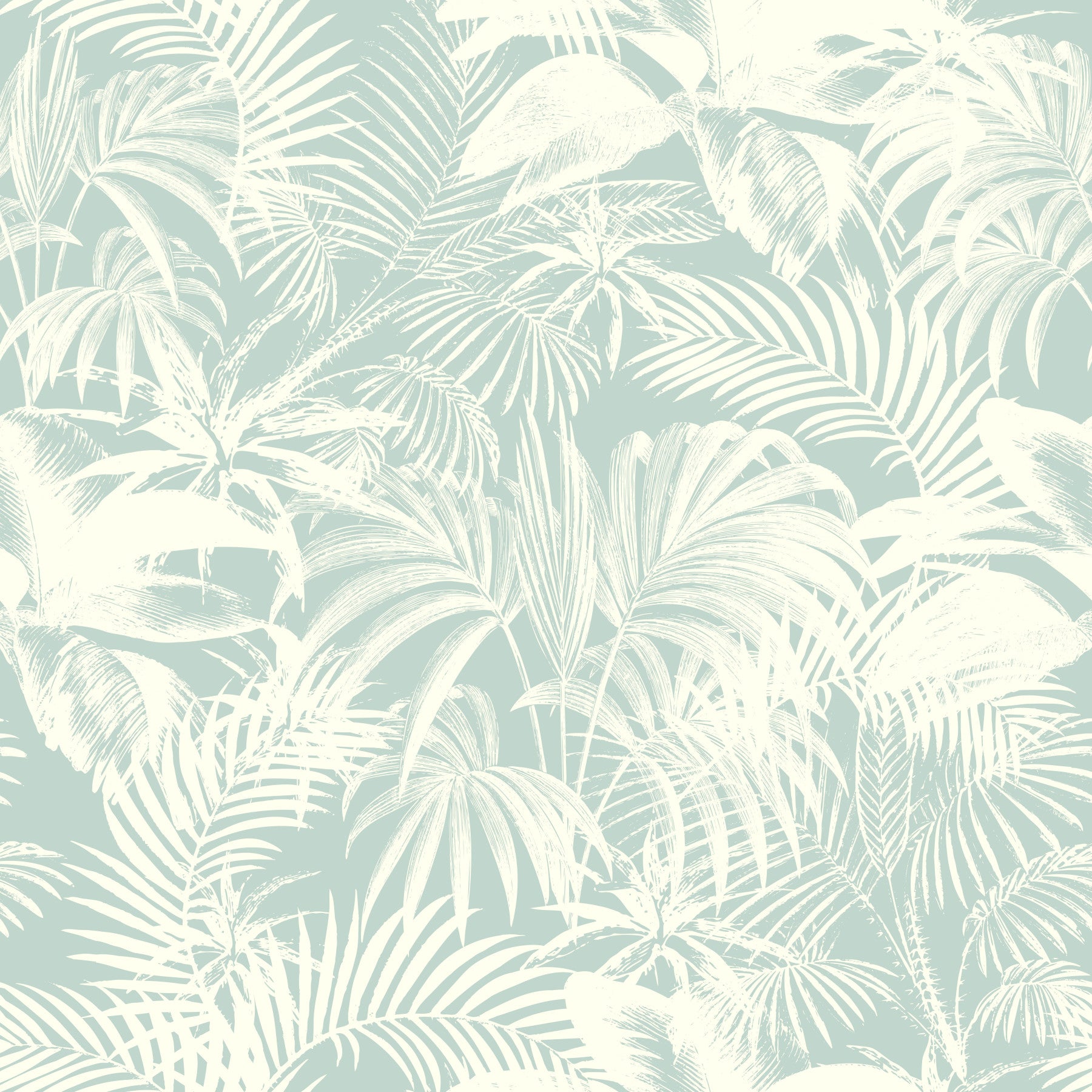 Drift into a tranquil paradise with this serene wallpaper for walls. Featuring a detailed, sketched palm leaf pattern in a soft white against a light blue backdrop, it introduces a relaxed vibe into any space. It's perfect for bedrooms, living rooms, or even bathrooms. This design lends a peaceful, botanical accent. The calm tones foster a serene atmosphere, making it a great option for creating a soothing retreat in your home. Let this palm print bring nature indoors and enhance your interior design.