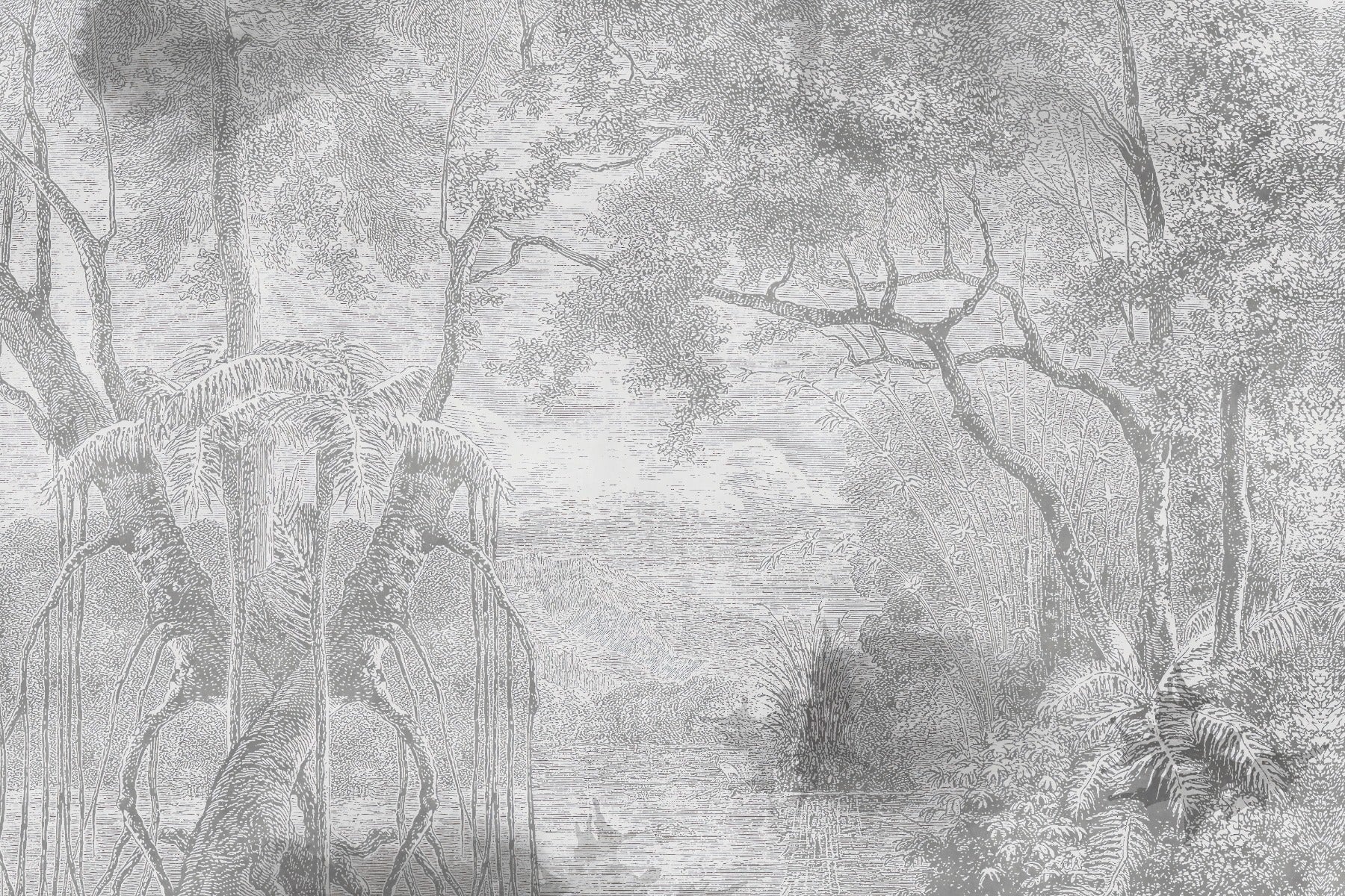 Gray Color Sketch Forest Wallpaper Murals for a Natural Look - Giffywalls