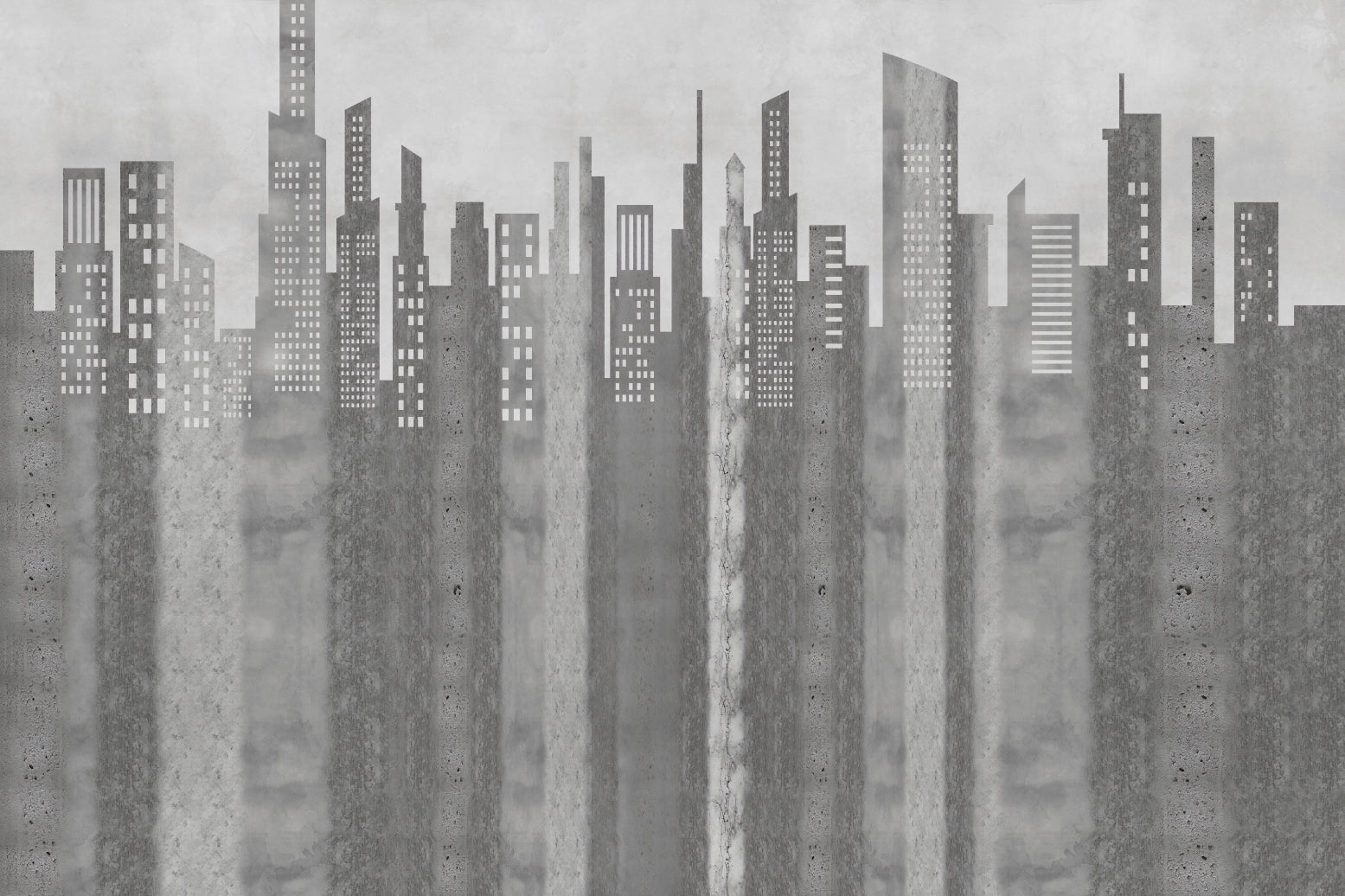 Modern city skyline in grayscale mural