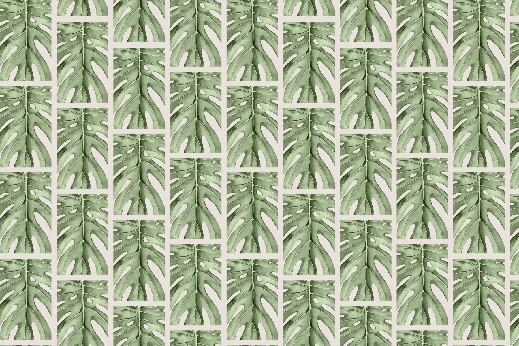 Create a tranquil and refreshing atmosphere with this botanical inspired wallpaper. The delicate design features an array of monstera leaf blocks in varying light green shades. This wallpaper for walls is well-suited for bedrooms and living spaces. The pattern blends seamlessly with current decor to establish a relaxing and organic charm.