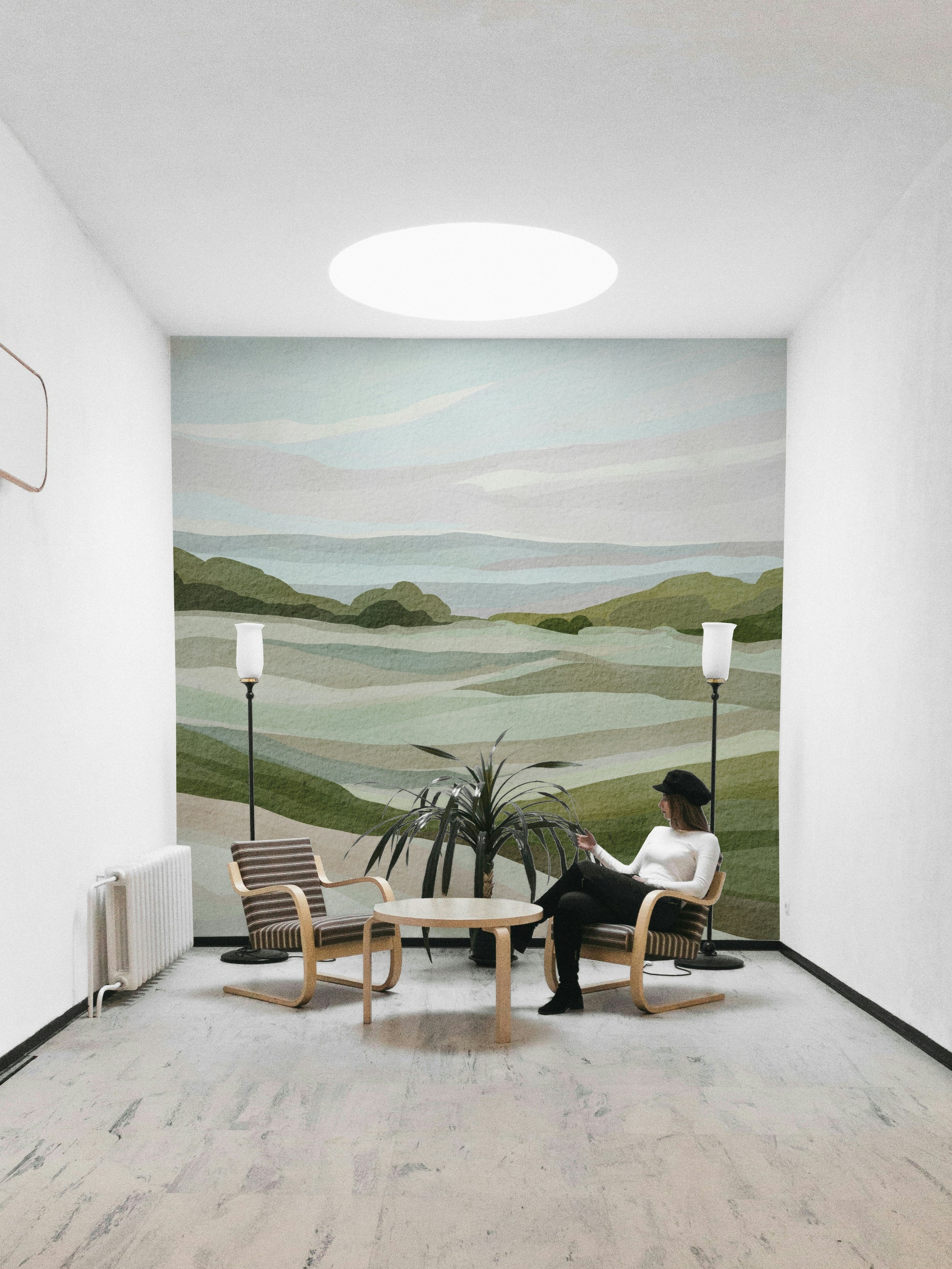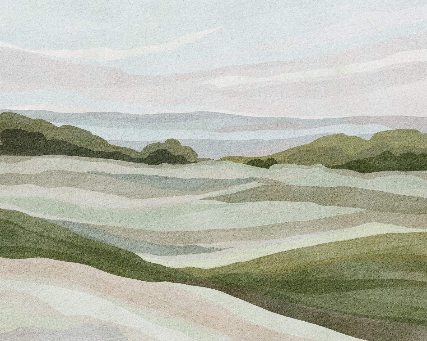 Abstract,Landscape Wallpaper,Watercolor,Green,Beige,Gray,Muted,Calm,Serene,Peaceful,Tranquil,Soft,Subtle,Minimalist,Nature,Hills,Bedroom Wallpaper,Meditation Room,Home Decor,Relaxation