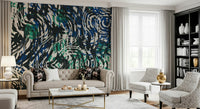 Transform any room with this dynamic brushstroke design. Bold lines intersect to form a mesmerizing pattern. The cool palette of navy, blue, and emerald invites a modern feel. It adds depth and visual intrigue. Consider using this wallpaper for walls in living rooms, bedrooms, or home offices. This design enhances the space with its artistic style and complements a variety of decors, from minimalist to eclectic.