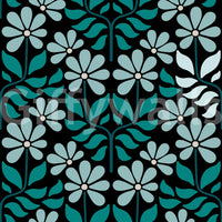 Embrace the retro vibe with this "Groovy Flowers Duck Egg Blue" wallpaper. A captivating pattern of stylized daisies in calming duck egg blue hues blooms against a rich black background. Teal green leaves, rendered in a playful, almost Art Deco style, intertwine and accentuate the floral design. The color palette is sophisticated yet cheerful, offering a sense of calm and nostalgic charm. Perfect for adding a touch of 70s-inspired elegance to any space, this wallpaper is a vibrant and sophisticated choice for those who appreciate a blend of vintage aesthetic and modern design.