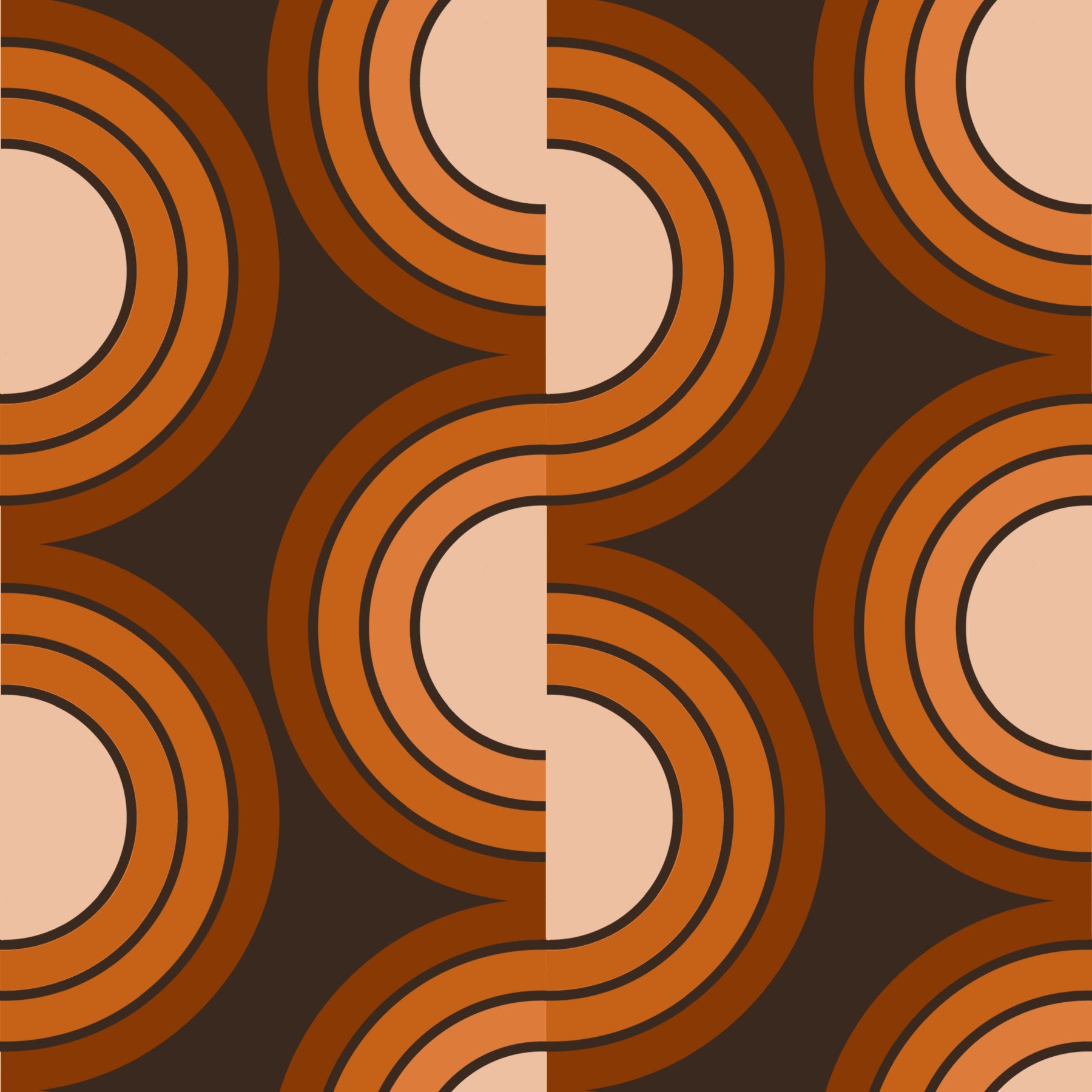 Add some retro flair with this vibrant wallpaper for walls. The composition of segmented circles and fluid lines in an array of browns and tans generates a sense of movement and rhythm. The design is very adaptable. It enhances spaces in a variety of ways, from adding a striking accent to a bedroom, to a bold statement in a living space. It pairs well with minimalist or mid-century modern furniture.