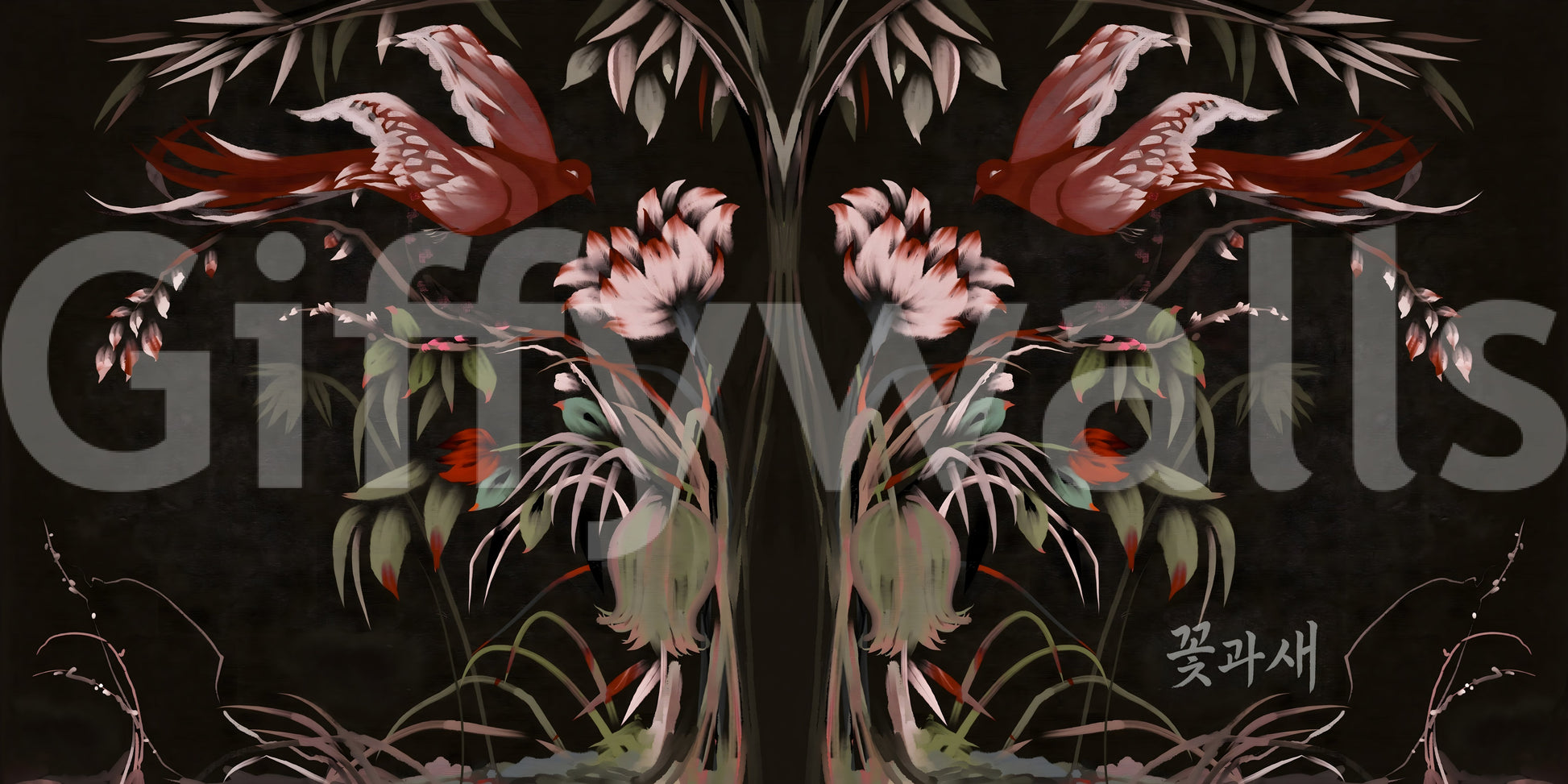 Evoke the serene beauty of the Joseon dynasty with 'Heaven's Birds,' a wallpaper that captures the essence of Korean artistry. This design features elegant birds in flight, their reddish-brown plumage a striking contrast against a deep, atmospheric backdrop. Delicately rendered floral motifs, reminiscent of traditional Korean paintings, intertwine with the branches, creating a sense of harmony and balance. The subtle use of color and texture brings a touch of timeless elegance to any space, while the symmetrical composition lends a sense of order and tranquility. 'Heaven's Birds' is more than just a wallpaper; it's a journey into the heart of Korean artistic heritage, inviting you to immerse yourself in the quiet beauty and refined aesthetics of the Joseon era. Let this artwork transform your space into a haven of peace and inspiration.