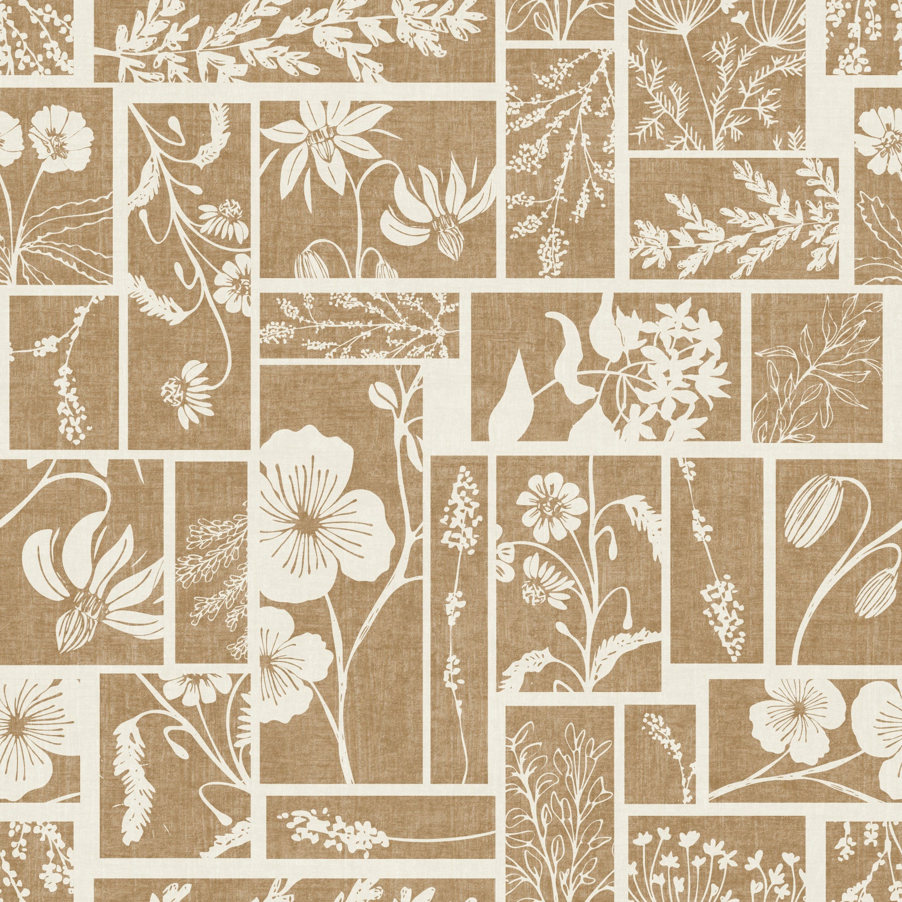 Discover serene botanical charm for your interiors with this inviting wallpaper for walls. It features an appealing patchwork design, presenting various floral and leaf illustrations within distinct rectangular blocks. Off-white botanical motifs beautifully contrast with a warm, textured beige background, creating a harmonious and inviting pattern. This rustic, farmhouse-inspired style enriches living rooms, tranquil bedrooms, or inviting dining areas, instilling a deep sense of calm and natural beauty. The design seamlessly enhances spaces by adding warmth and organic character. It beautifully complements interiors featuring natural wood, soft linen, or cozy textiles, crafting a serene and stylish environment.