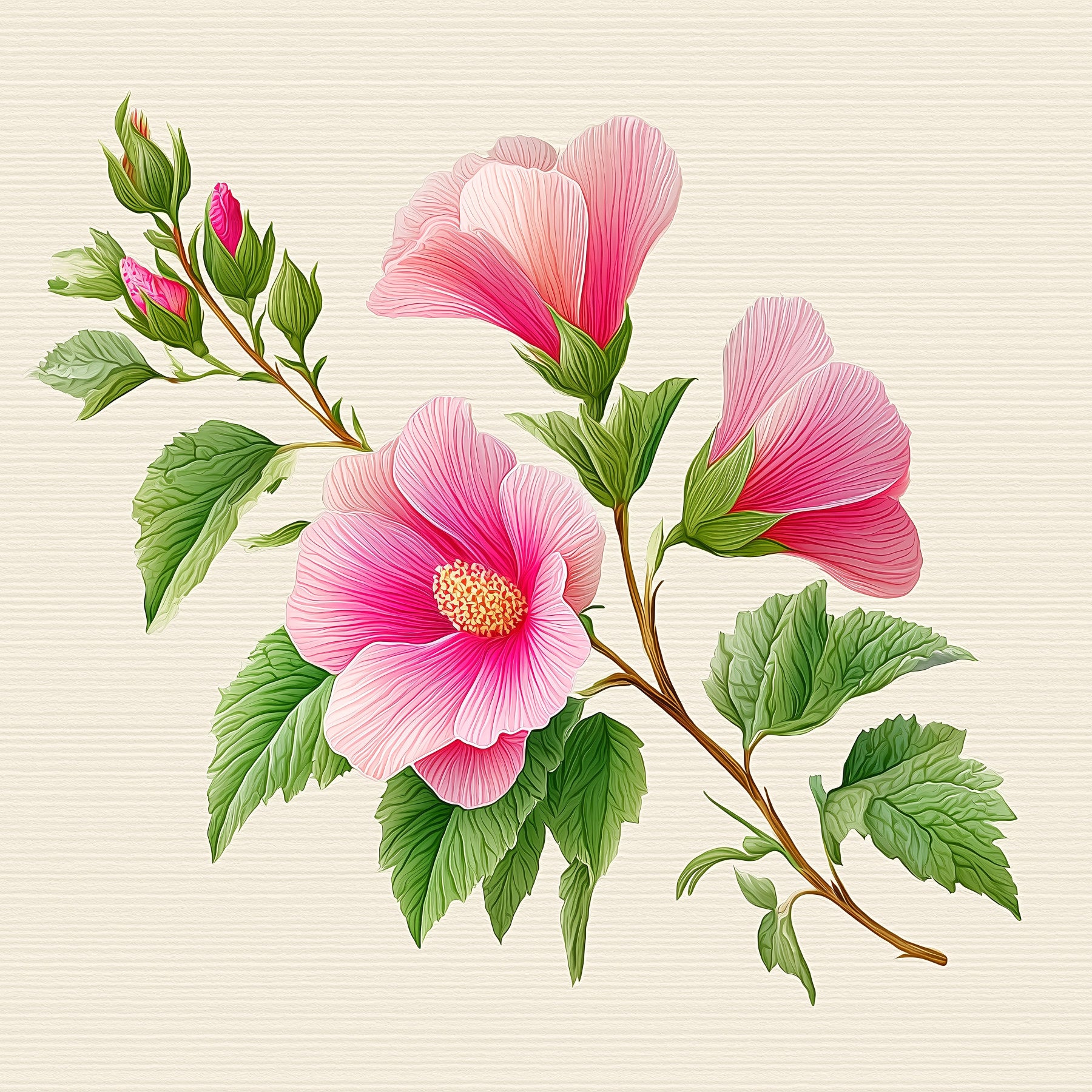 Infuse any room with a touch of floral magic with this artistic wallpaper for walls. This design shows striking pink hibiscus and rich green leaves. The soft, cream background establishes a calm and elegant atmosphere. It is a perfect choice for a bedroom, bathroom, or living room. Its blend of colors and design will elevate any area. Enjoy the beauty of nature indoors with this stylish piece. Its botanical beauty complements interiors and creates visual interest.