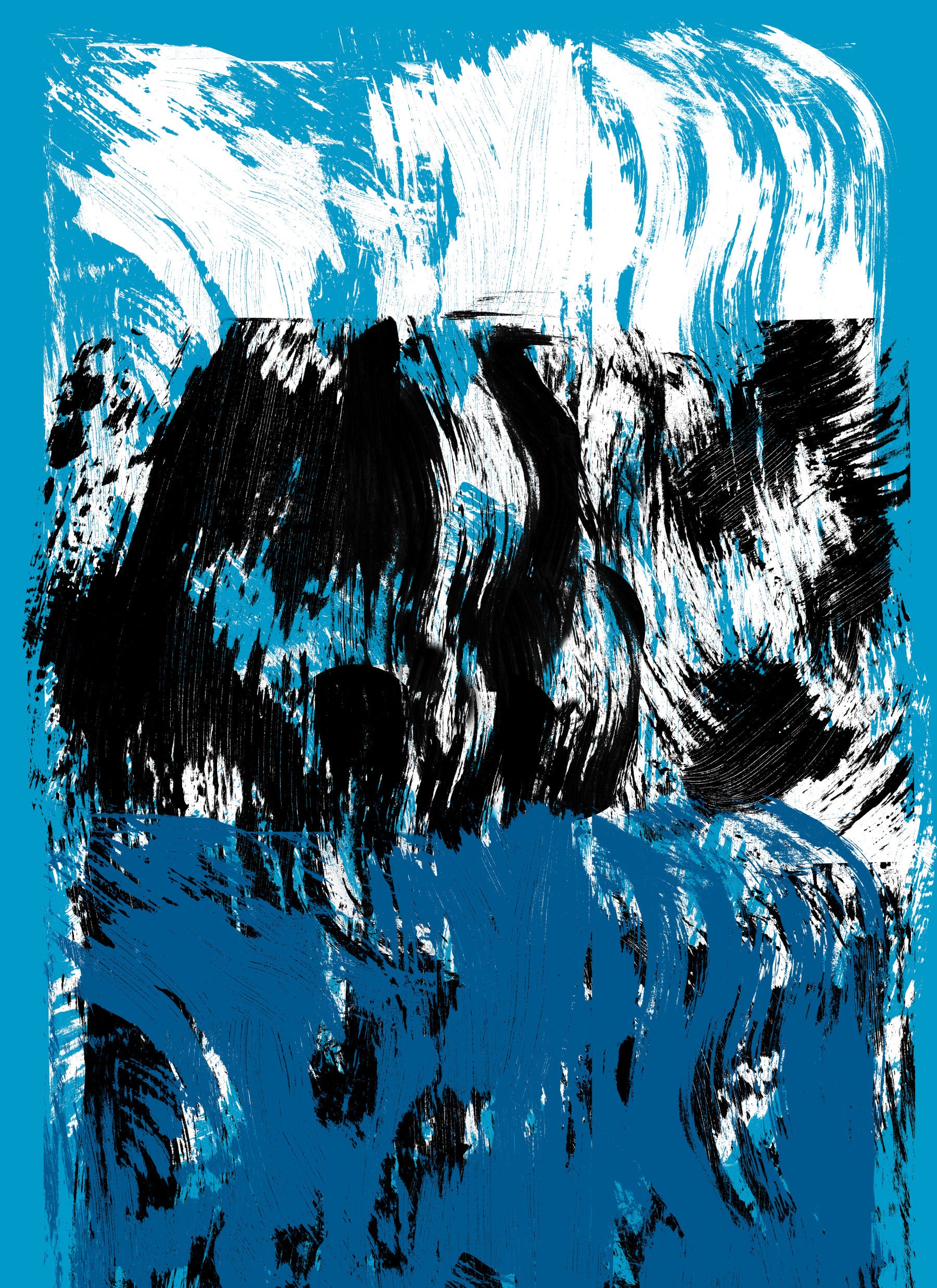 Tumultuous wall mural Obscure black mass, churning blue, High Tide.