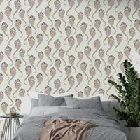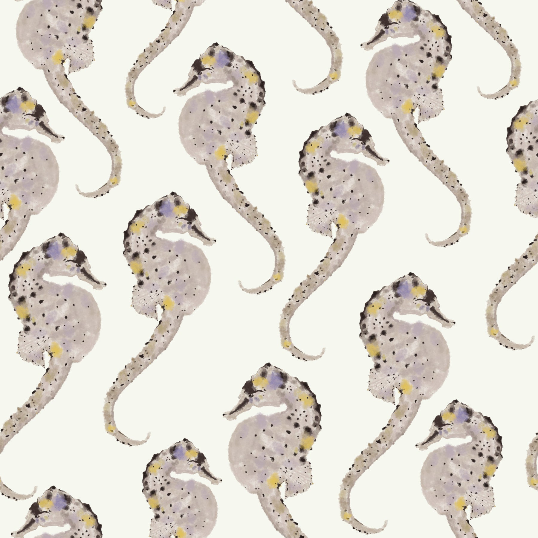 Bring ocean charm to your space with the Hippocampus Wallpaper. This playful seahorse design features a soft watercolor pattern in shades of grey, yellow, and black, repeating gracefully on a light background. Perfect for kids’ rooms, bathrooms, or beach-themed corners, it adds a whimsical marine touch without overwhelming the space. Each seahorse appears hand-painted, giving the wallpaper an artistic and gentle vibe. Use it to create a calming yet lively wall design that feels connected to underwater life. This wallpaper blends well with natural tones, seashell accents, and light wood furniture, offering a fresh way to highlight marine-inspired interiors.