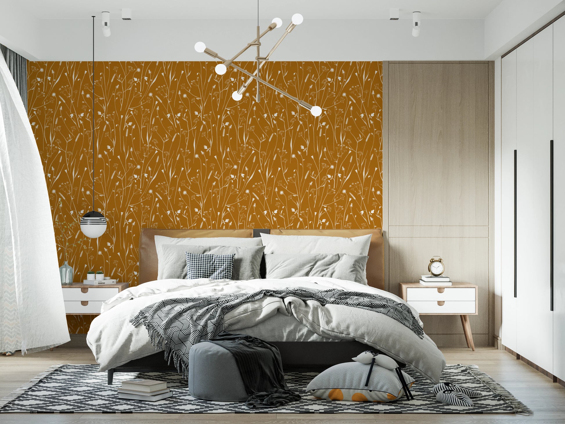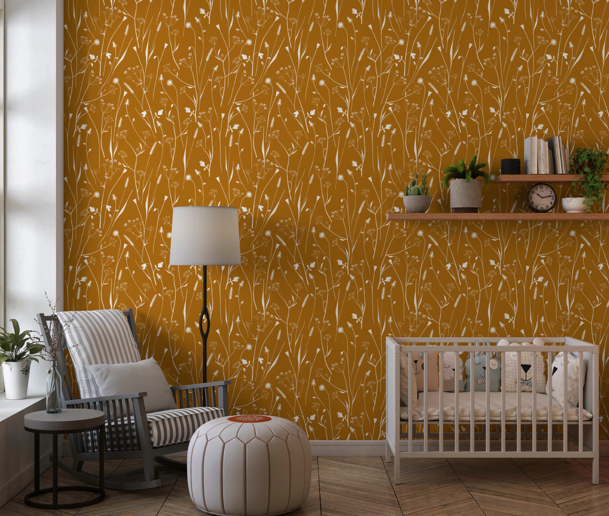 Evoke a sense of serene nostalgia with 'Homeland Floral Golden,' a design that brings the warmth of sun-drenched fields into your living space. This captivating pattern features a delicate array of stylized wildflowers and grasses, rendered in soft, creamy whites against a rich, golden backdrop. The subtle interplay of light and shadow creates a soothing, organic feel, perfect for adding a touch of natural elegance to any room. Its timeless beauty makes it a versatile choice, seamlessly complementing both modern and traditional interiors. Transform your walls into a canvas of enduring style with this homage to simple, pastoral beauty.