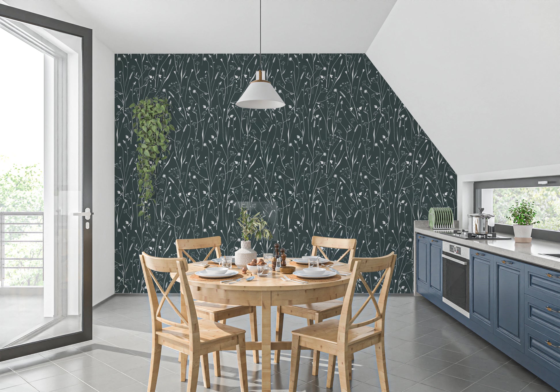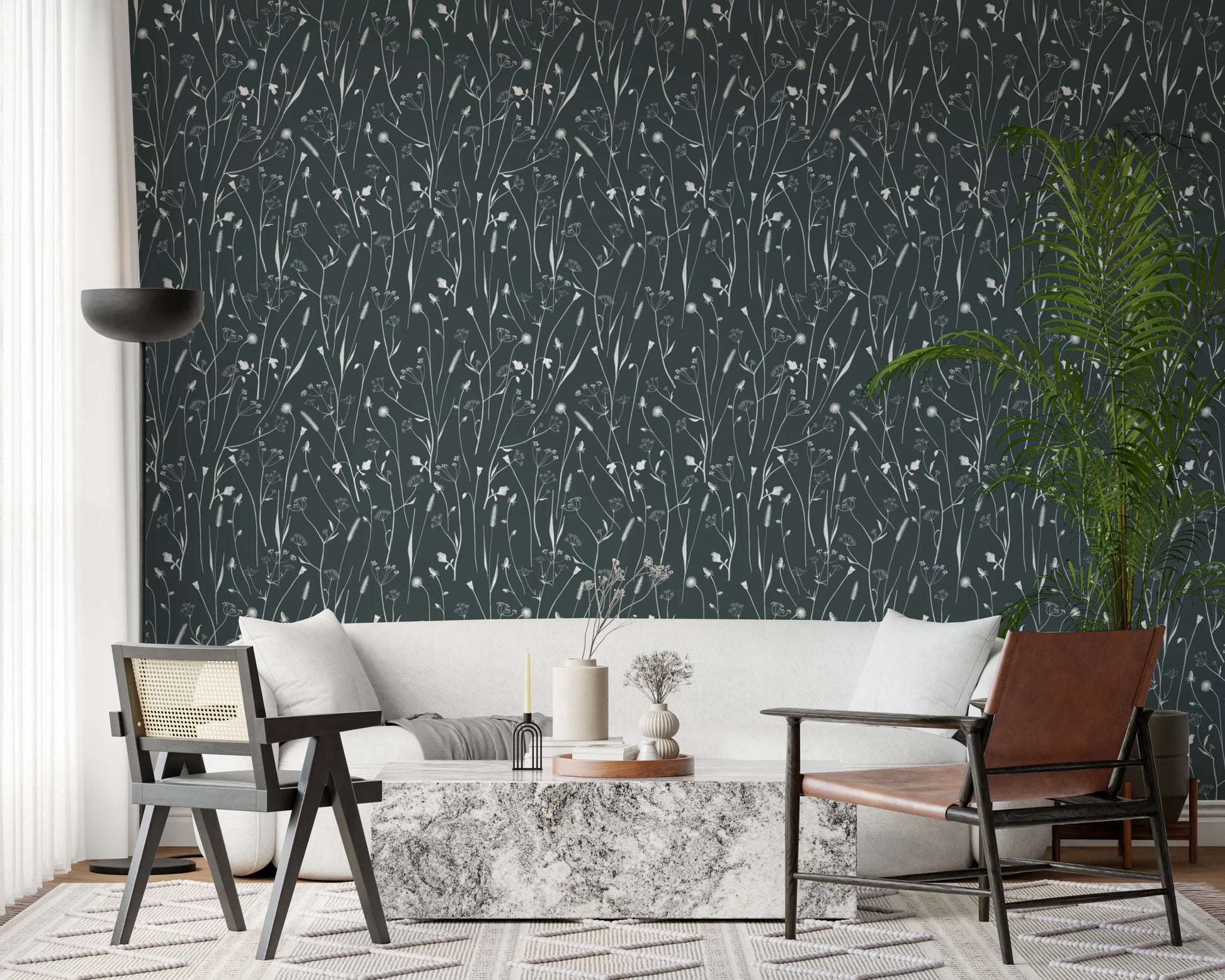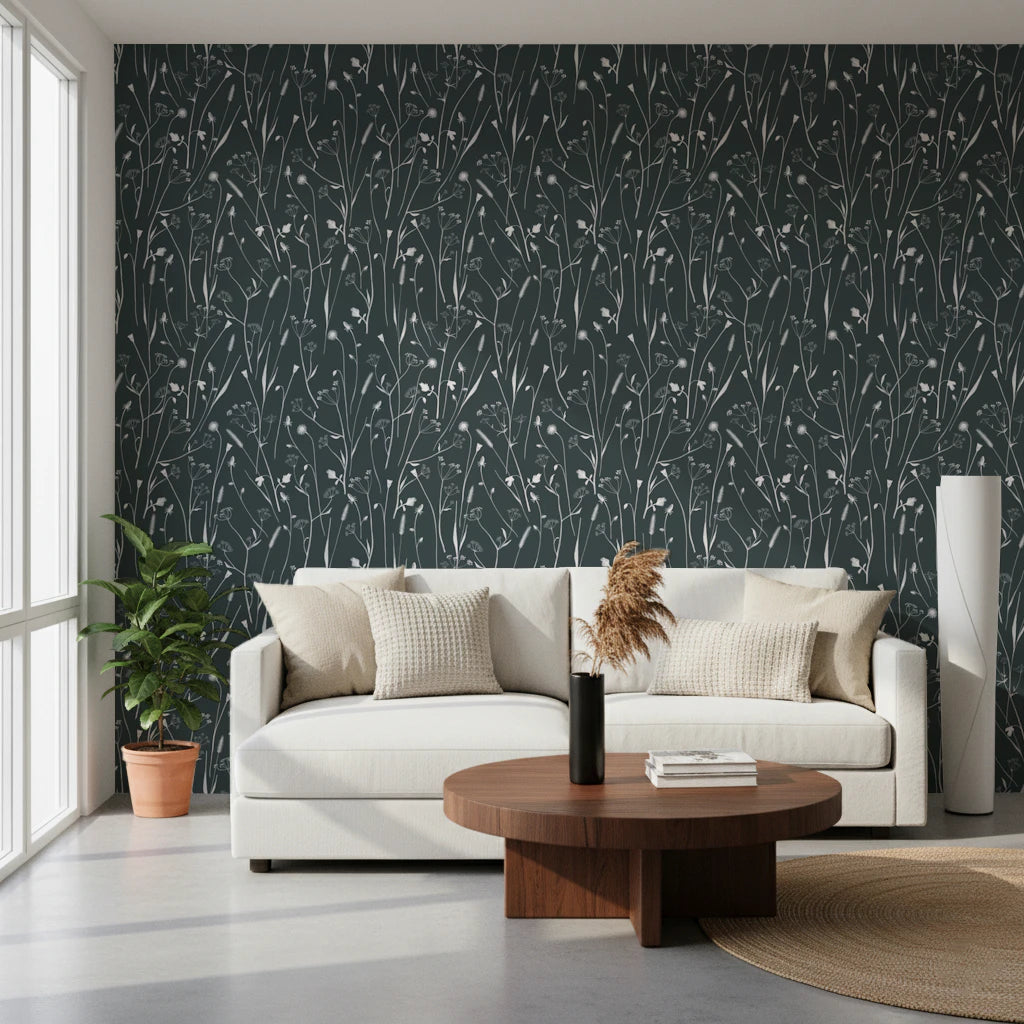 Transform your walls into a serene yet surreal landscape with 'Homeland Floral Outer Space.' This design captures the essence of ethereal beauty, depicting delicate floral silhouettes floating against a deep, starlit expanse. Imagine a field of wildflowers subtly illuminated by distant galaxies, the familiar blossoms rendered in dreamlike detail, evoking a sense of peace and otherworldly calm. The interplay of light and shadow creates depth and dimension, making it a captivating piece for any room seeking a touch of cosmic elegance. Invite the tranquility of a starlit garden into your interior and escape the ordinary with this enchanting design.