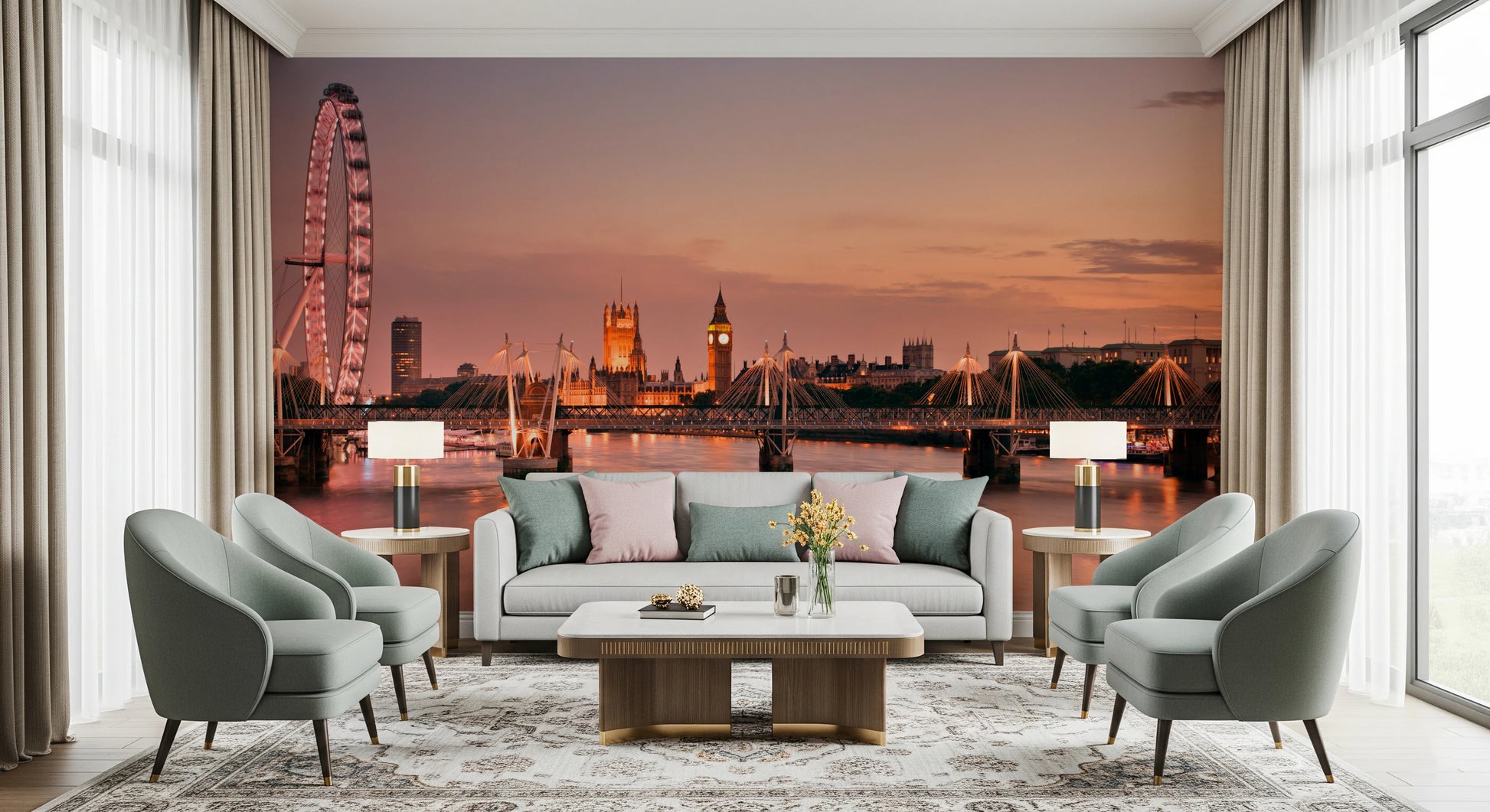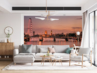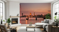 Waterloo Bridge and Houses of Parliament at night, London, UK. Introduce a touch of cosmopolitan elegance into your home with this breathtaking London cityscape. This striking wallpaper for walls brings the magic of the city to any room. The warm, inviting colors create a welcoming atmosphere in living spaces or bedrooms, while the famous landmarks, including Big Ben and the London Eye, add a touch of iconic charm. The soft, reflective water and intricately designed bridge create a stunning depth, bringing visual interest and sophistication. This statement piece effortlessly enhances your decor and captures the essence of British charm.