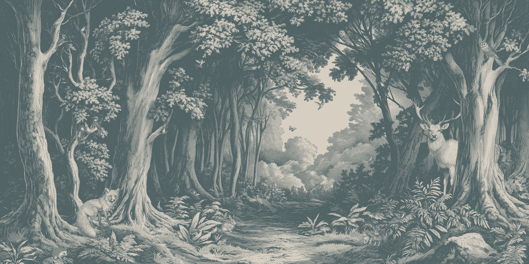 Enter a magical world filled with forest animals, birds and butterflies all illustrated in the style of a 19th century picture book. Like having the doorway to a fairy tale world on your wall, this elaborate, soft teal and ivory mural offers endless hours of fantasy and wonder as you discover all the delightful creatures hidden in the forest depths. From a majestic white stag to a charming fox, adorable hedgehog, cheeky toads, subtle birds and fluttery butterflies, this sophisticated tapestry-like wall mural will tickle the imagination of children and adults alike. Great for creating an immersive world, fill your wall with Into the Forest and create cozy living spaces with a hint of timeless storytelling.