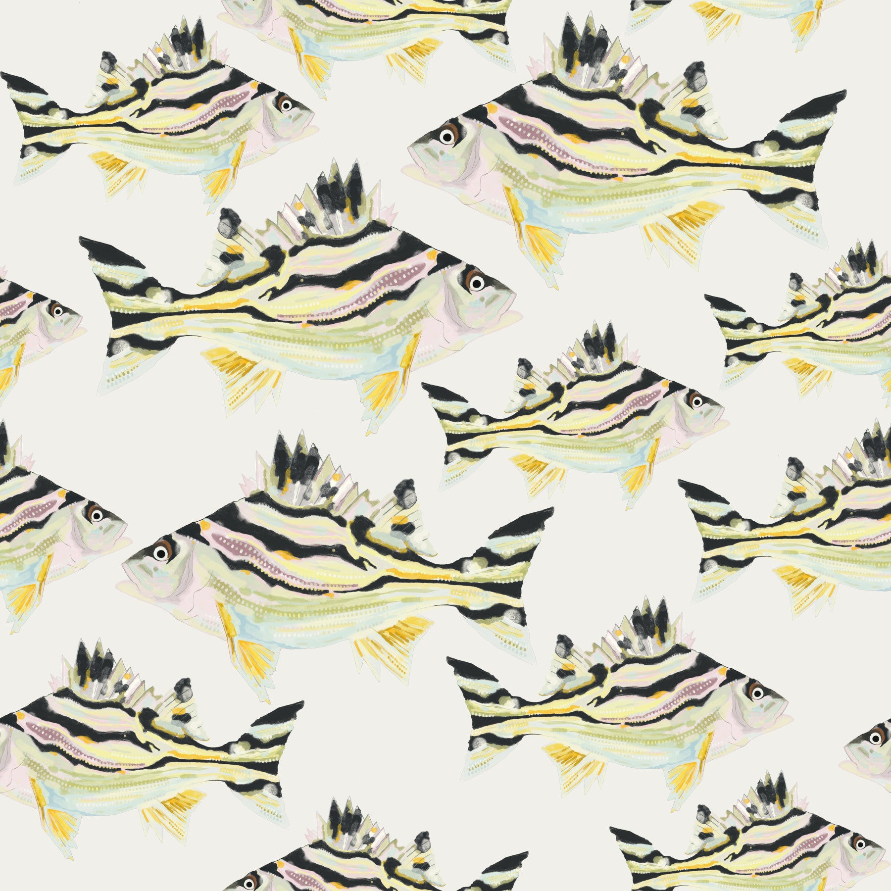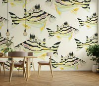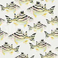 Dive into tranquility with "Jarbua - The Fish," a captivating wallpaper featuring a seamless pattern of vibrantly colored fish. Each Jarbua is rendered in a painterly style, showcasing a mesmerizing blend of pastel pinks, soft greens, and bold black stripes against a calming off-white background. The intricate details and slightly abstract rendering create a sense of both elegance and whimsical underwater charm, ideal for adding a touch of aquatic sophistication to any digital device. The repeating pattern provides a soothing visual rhythm, perfect for enhancing focus or creating a serene atmosphere.