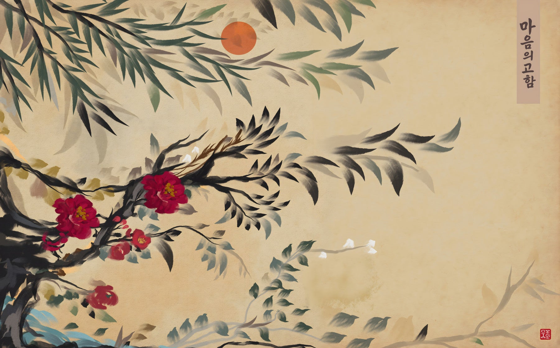 Soft, traditional Korean art elements in the peaceful Joseon era style Tranquil mind Wall Mural.