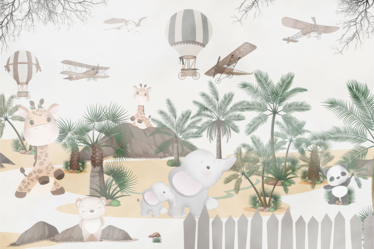 Safari-themed mural for boys' room wallpaper