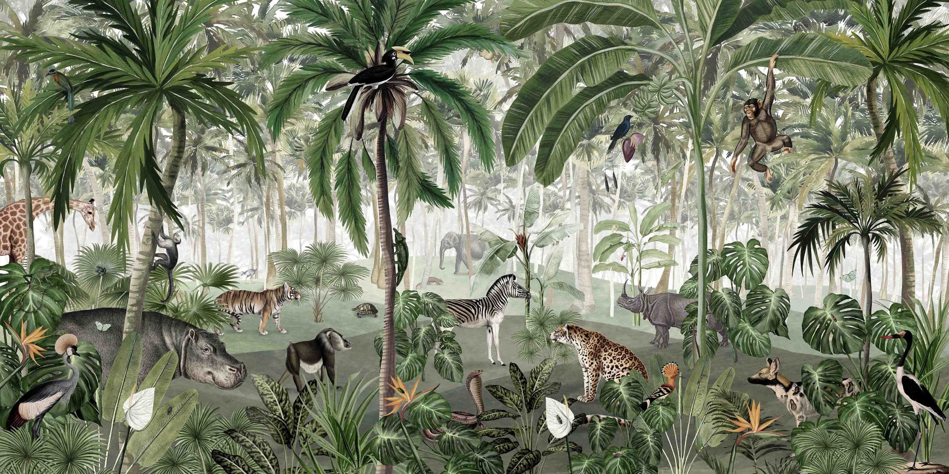 Transform your child's nursery into a wild jungle adventure with our Jungle Lookbook Wallpaper Murals. Into this enticing design, a strong collection of jungle animals and landscape is integrated and conducive for nurturing imagination and awe. The light interactive digital illustrations and the bright hues help make the interface enjoyable and stimulating, thereby fostering the exploration and learning. Perfect for fostering an appreciation for nature and the intrepid, this child's wallpaper mural converts any nursery or playroom into a fun jungle den. Make hundreds of stories and dreams come alive in your child's early years with the Jungle Lookbook