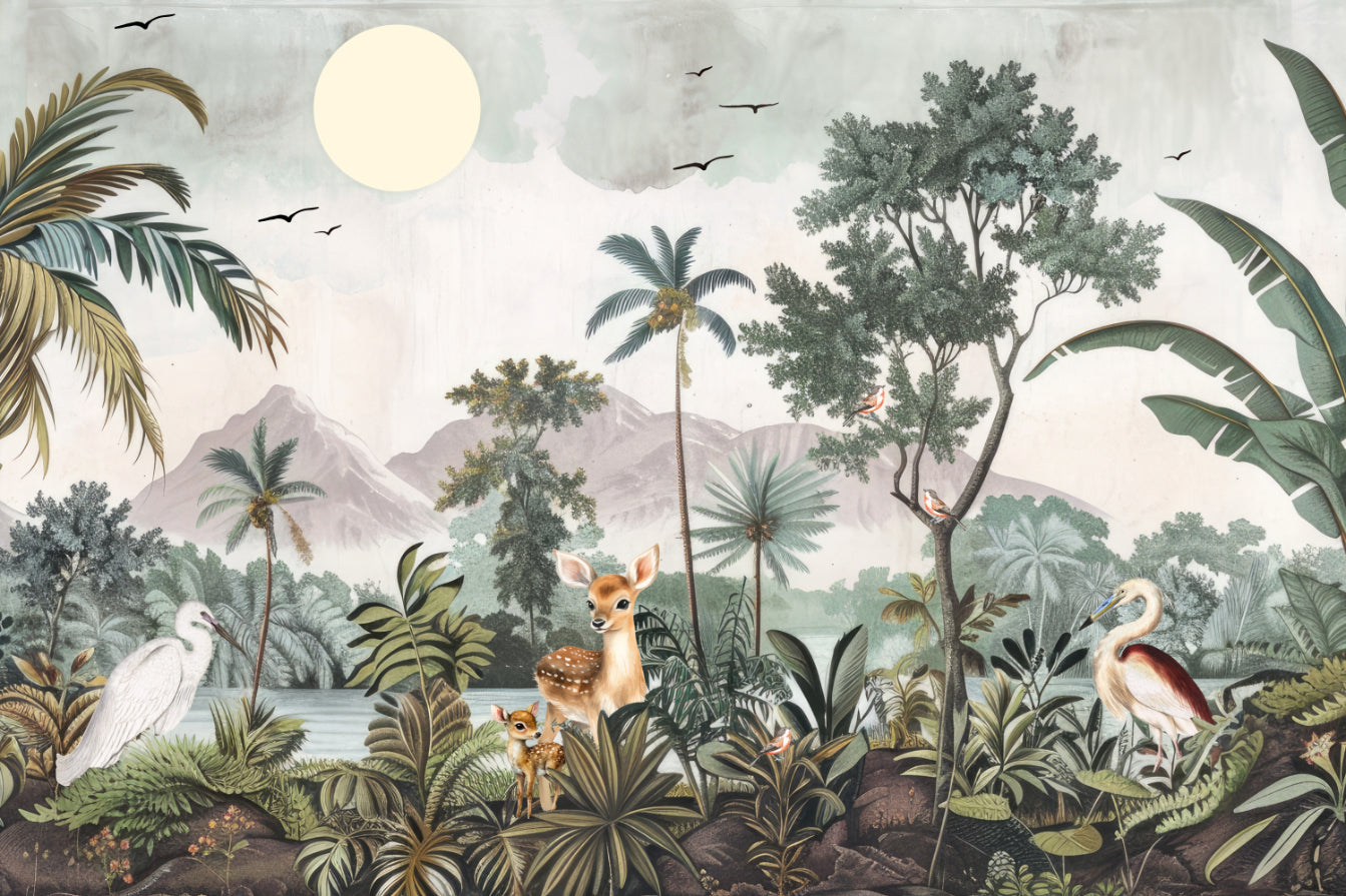 Beautiful Jungle Wildlife Nursery Wallpaper